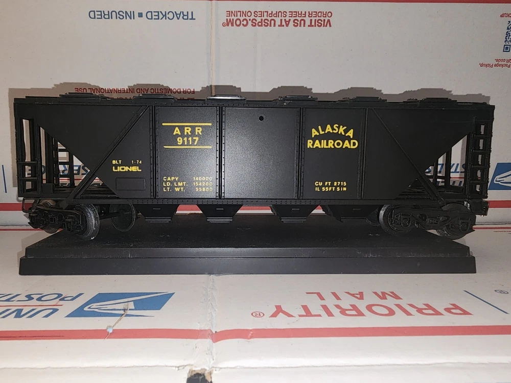 Lot of 4 alaska railroad freight cars, listed as used due to no boxes. most look to have little or no run time. 0 or 0/27 gauge. ARR 9117 COVERED QUAD HOPPER BLT 1-74 / 9758 BOX CAR BLT 1-75 / 16523 CABOOSE LIGHTED BLT 1-91 / 16129 TANK CAR. shipping is based on your zip code and weight 3 pounds from 07033 via usps. You pay what I pay, no markups. I've been collecting lionel trains for last 20 years and I'm never going to have time or room to complete a layout. All trains listed have been purchased from flea markets, estate sales, or internet. Basically I just would test engines on small track and make any minor repairs, then it would go into storage. Some trains may have been modified, repainted, or have non original parts by previous owners. Items are described to the best of my ability, before listing I run engine through basic operation and note any problems. Unless otherwise stated, trains are sold as is. So please look at pictures carefully and ask any questions you may have before bidding. Combined shipping available on same day purchases, please request or wait for invoice. I try to charge best shipping rates for buyer, but sometimes it's better to pay more for safer packaging on fragile products. I will be listing more trains for weeks to come.
