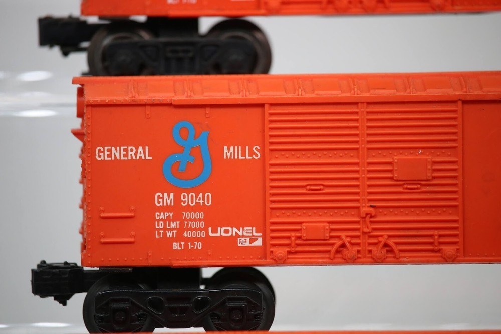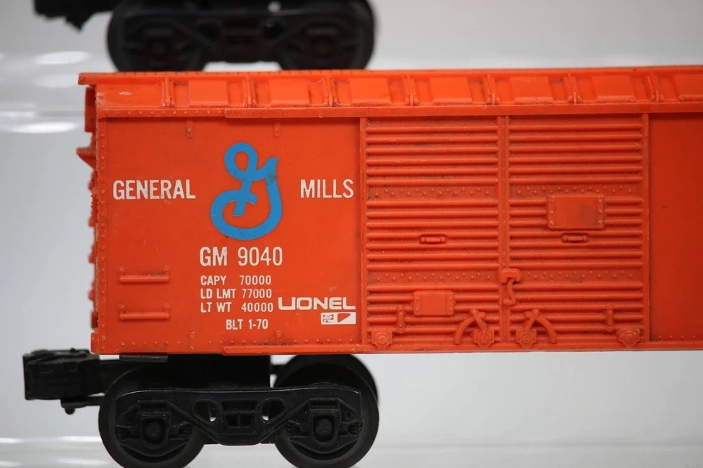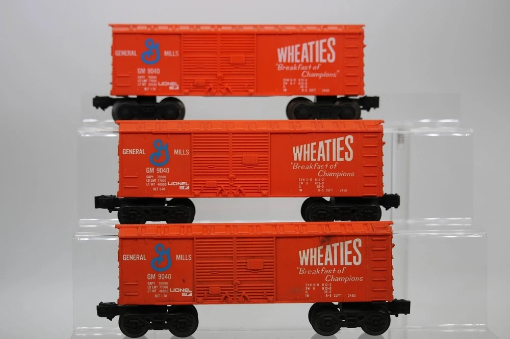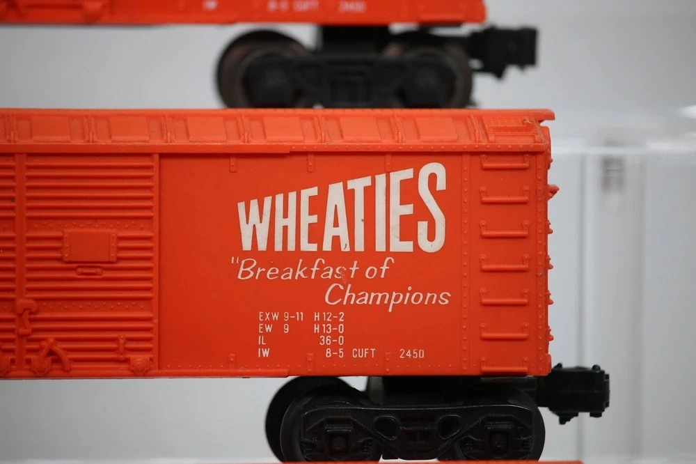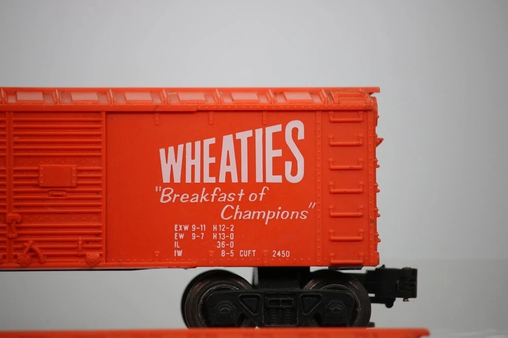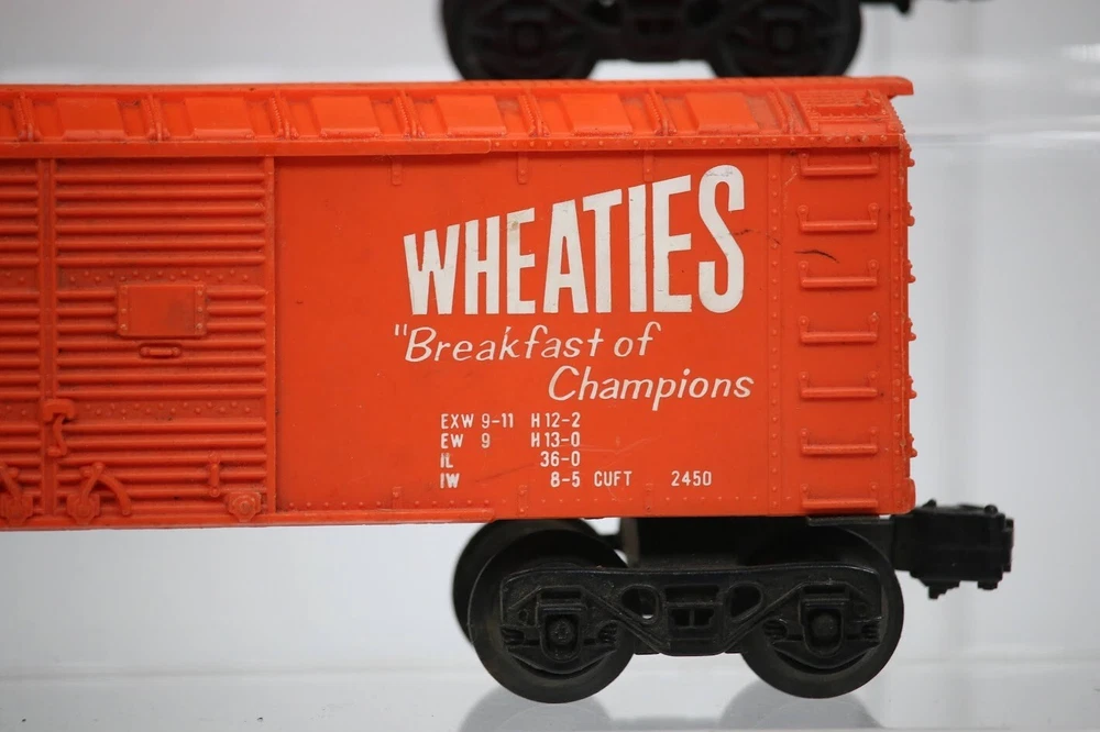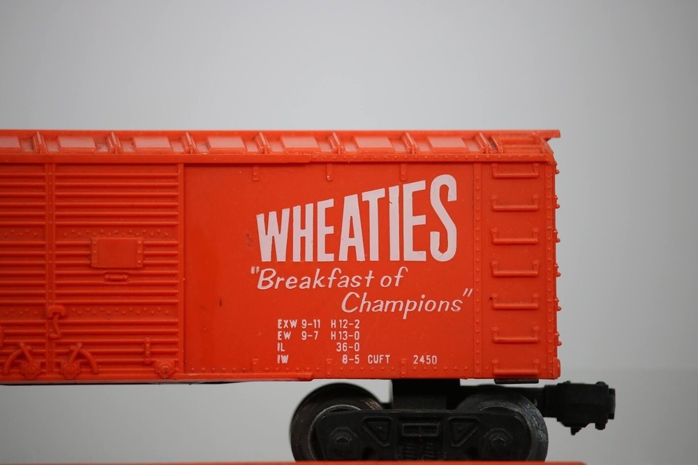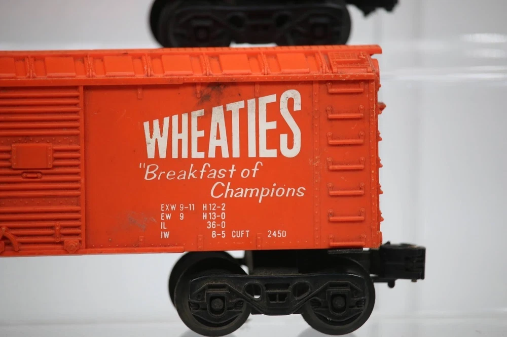 Lionel MPC Trains BOX CAR Santa Fe Wheaties General Mills LOT OF 3 SKU#009891 PLEASE READ BEFORE PURCHASING Condition: Please review all photos carefully for details on the item's condition. Photos are part of the description, and any notable flaws will be highlighted. Combined Shipping: If purchasing multiple items, request a revised invoice before paying to ensure accurate combined shipping costs. eBay's system may not calculate this correctly, leading to overcharges. Lighting Disclaimer: Photos are taken under bright lighting to highlight details, which may cause slight variations in color or hue depending on your lighting. If you need additional photos (e.g., in natural light) or more details, please ask before purchasing. As-Is Items: Items come AS-IS. The way they appear in our pictures is how the Item will arrive to you. What's Included: Only the items shown in the photos and described in the listing are included in the purchase. We strive to describe items thoroughly and provide clear photos. If you have any questions or concerns not addressed in the listing, feel free to ask before purchasing. Thank you for shopping with us!
