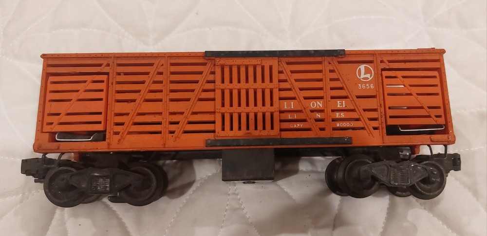 The Lionel No 3656 Post War Operating Cattle Car is a rare vintage collectible from the mid-20th century. This orange freight car features diecast construction and is in 1:48 scale, making it ideal for model railroads. With its ready-to-go status and vintage charm, this piece is a must-have for collectors of classic toys and model trains. Made in the United States by the renowned brand Lionel, this cattle car captures the essence of transportation history with its iconic design and theme. Needs a little cleaning. You can always make me an offer.