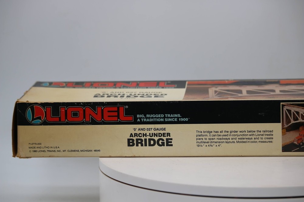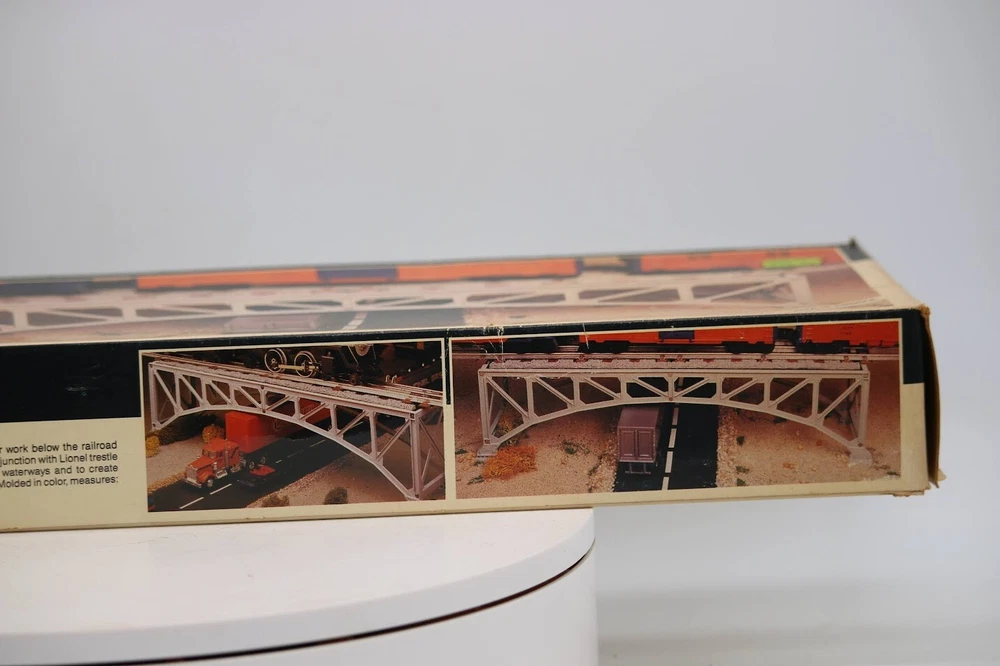 Lionel 6-12770 Steel Deck ARCH UNDER BRIDGE Kit NEW IN BOX Look closely at the pictures to see further details. We ships USPS PLEASE see photos for detailed condition!! PLEASE LOOK AT THE PHOTOS CAREFULLY BEFORE PURCHASING!! If you are purchasing more than one item from us and would like combined shipping, PLEASE request an adjusted invoice from us while still in the cart and BEFORE paying. eBay does not usually calculate combined shipping accurately and you might get overcharged. Please be aware that when we photograph items, we use lighting that will show the details well. Although we try to present the product as accurately as possible, the lighting may affect the overall look of the item by appearing lighter/darker or possibly a different hue than the actual item. Depending on the type of lighting you have in your home, there may be some differences between the photos and the actual item. If this is a concern of yours, please feel free to request additional photos made in natural lighting or ask for a more detailed description of the item PRIOR TO PURCHASE! PLEASE NOTE: We greatly appreciate your interest in our item for sale. We look forward to a pleasant, quick and satisfying transaction for everybody, so please note the following information before bidding. Thank you! ITEM DESCRIPTIONS: * We will try to describe items well and provide plenty of photos. Please review these carefully before bidding or purchasing. * Only the items pictured and described are what you will receive when purchased. * We will occasionally offer an item clearly marked "AS-IS". This means that we are not sure if it works because we are unable to test it for whatever reason. We will offer these at a discounted price then a similar "working" item. It is possible that these items will work fine, but it also is possible that these items are more useful for their parts. Please only bid on or purchase these items if you are well aware of this, as we will only provide refunds of actual item price (no shipping cost refunds) for these items. * If you have any questions that aren't addressed by the descriptions or photos, please feel free to ask before you bid. * There may be pieces that are missing or broken including, but not limited to, couplers, brake wheels, steps, ladders, railings, minor rust spots or cracks, etc. May need detailed cleaning SHIPPING: * We usually do not offer shipping to international addresses, but ARE WILLING TO TAKE CONSIDERATIONS. * We try to pack items as carefully as possible, but damage may occur during shipping. If you receive an item that was damaged in shipping, please contact us and we will work with you to resolve the problem. * We will combine shipping costs for all items the same buyer purchases from us within 2 days. Please wait to pay for items until you're done shopping with us. Please contact us if you're expecting to buy more items from us, or to have us adjust the shipping costs. * We will usually ship items out within 24 hours of payment being received Sunday through Friday at noon. We will notify the buyer if there will be a delay in shipping for some reason. Please allow additional time for holidays and weekends when the post office is closed. If payment is received after noon (EST) on Friday, the item might not be shipped until the following Monday. * We do try to recycle shipping materials as much as possible. RETURNS: We abide by eBay's Money Back Guarantee. We definitely want our customers to be happy with their purchase! You may return an item within 30 days of receiving it with the following guidelines: * If the item is defective or damaged (unless we clearly marked the listing "AS-IS"), the buyer will receive a full refund after the buyer returns it and it is received by us. Customers who falsely claim their item is defective, damaged, or not as described in order to receive a full refund and free return shipping will be permanently blocked from making future purchases from us. * If the item is as described (including "AS-IS" items) and the buyer decides for any other reason than defective/damaged to return it, only the actual price of the item will be refunded once it has been returned and it is received by us. The buyer will be asked to pay all original and return shipping charges. This includes all reasons other than defective/damaged, including wrong size, wrong type, changed mind, etc. All "AS-IS" items will fall into this category of return. Please make sure the item is what you want before purchasing it. * Please contact us before initiating a refund request. FEEDBACK: We always leave feedback at the end of transaction. We consider the transaction to be over when we receive feedback from the buyer confirming the item arrived satisfactorily. If you are unsatisfied with your purchase please contact us before leaving neutral or negative feedback. WE APPRECIATE POSITIVE FEEDBACK IF YOU ARE SATISFIED WITH YOUR PURCHASE! THANK YOU FOR YOUR INTEREST IN THIS ITEM!