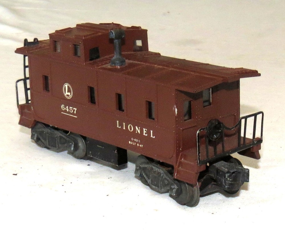 Lionel O Gauge 6457 Caboose - Built 9-47 Excellent. Wheels rotate fine. The coupling work fine. No physical damage. Made in USA -------------------------------------------------------------------- We try to declare all issues. Any white spots in the pictures that have not been mentioned are more than likely glare from the camera flash, but if you have any doubts, please don't hesitate to ask. Please look at our other auctions, and especially our ebay store items, and save on shipping with multiple wins Please email us with any questions. Honest Shipping : We do not insult your intelligence by hiding the shipping costs in the price of our items, and then offering "free" shipping - trying to fool you into thinking that we are absorbing the shipping costs. What nonsense! Our shipping costs are based on an estimate of the shipper's rates, ebay shipping fees, plus a small handling charge. If you can find the same item with a cheaper total cost - purchase price plus shipping ? anywhere on the web - please contact us. We cannot guarantee to beat it (because of distance-based shipping), but will give it our best shot. Please be sure that you understand, and are comfortable with, the total costs before making your purchase. If you have any questions - please ask first. Combined Shipping: We always offer combined shipping for multiple purchases. Please add your purchases to your ebay "cart". When you have completed your purchases, (either multiple items from a single listing, or items from two or more listings), please contact us, using the "Requests total from seller" button, and we will generate a final combined-shipping invoice.. Note: You will possibly receive an earlier invoice (or invoices) generated automatically by ebay. These are accurate for single item purchases, but often inaccurate for multiple items, due to limitations with ebay's shipping calculator. Our combined shipping invoice will include a note stating that it reflects combined shipping. If you have any doubts - just ask. Shipping Methods: Unless otherwise noted, for each item we offer three forms of shipping: 1. Free: Personal pick-up: You can collect your purchase in San Jose, CA - with zero shipping charges. 2. Economy: One of : USPS Ground Advantage if the package qualifies, or USPS Media Mail if the package qualifies. 3. Expedited: for example, USPS Priority Express Mail We are always willing to at least consider any other valid shipping method - just ask. If the costs allow it, we will promote your package to a faster service where we can, at no additional charge to you. If shipping is not to a USA contiguous 48 state street address, or you request a faster or other shipping method, such as UPS Air, or Express Mail, then shipping costs may vary. Please allow at least 14 business days for delivery to the contiguous 48 USA states. Media Mail typically takes longer. More specific estimates are available on the USPS web site. For AK and HI , USPS Priority Mail should take 4 days or fewer, but USPS offers no time estimates for Parcel Post. Books, other printed matter, and media: We typically ship books, CDs, videos, and the like by Media Mail. This can be considerably slower than other services. If you need your book quickly, please let us know, and we will re-quote the shipping, typically at a higher cost. International Buyers - Please note: International mail is often slower than the estimates available on the USPS web site, so customers should allow a minimum of 14 days for airmail delivery - longer if your parcel is held in incoming customs. USPS no longer offers any international surface mail, or M-bag service. Air Mail is the only remaining option for international shipments. International buyers should double-check for mailing costs before bidding. Also: Import duties, taxes and charges are not included in the item price or shipping charges. These charges are the buyer's responsibility, so please check with your country's customs office to determine what these additional costs will be prior to bidding/buying. Additional charges are sometimes collected by the delivering freight (shipping) company on delivery or pick-up - do not confuse them with additional shipping charges. We do not mark merchandise with lower values, or mark items as "gifts" - US and International government regulations prohibit such behaviour. Questions. Please email us with any questions: If you have any questions, please ask at least 24 hours before end of auction as we have other commitments that require our attention, and are not always at the computer. We pack with care but after your parcel is delivered to the carrier we have no control over delivery times. Please ask all questions before bidding. Returns. Unless otherwise noted, we always accept returns - for any reason. The item must be returned within 30 days with all original packaging . The purchase price will be refunded when the item is returned in the same condition as it was shipped . If there is a relevant error in the listing description, we will also refund shipping in both directions. Problems & Issues. Please always contact us with any problems before leaving any feedback or DSRs. We will always do everything we can to resolve any issue. Once feedback has been left it cannot be changed, and we cannot guarantee to resolve your problems. Feedback: **We always work to earn 5-star feedback from you. If you have any concerns about this transaction, please contact us, preferably before bidding, but definitely before leaving feedback, so that we can do everything possible to resolve the issue.** If the transaction has gone well Positive feedback and 5-star DSRs - for each item, if you have bought more than one - is appreciated. Payment Method: For shipped purchases, all major credit card payments through Paypal. We cannot accept credit card payments directly. Payment Timing: Unless negotiated before the purchase is made, payment must be received within seven days of the listing's close. A