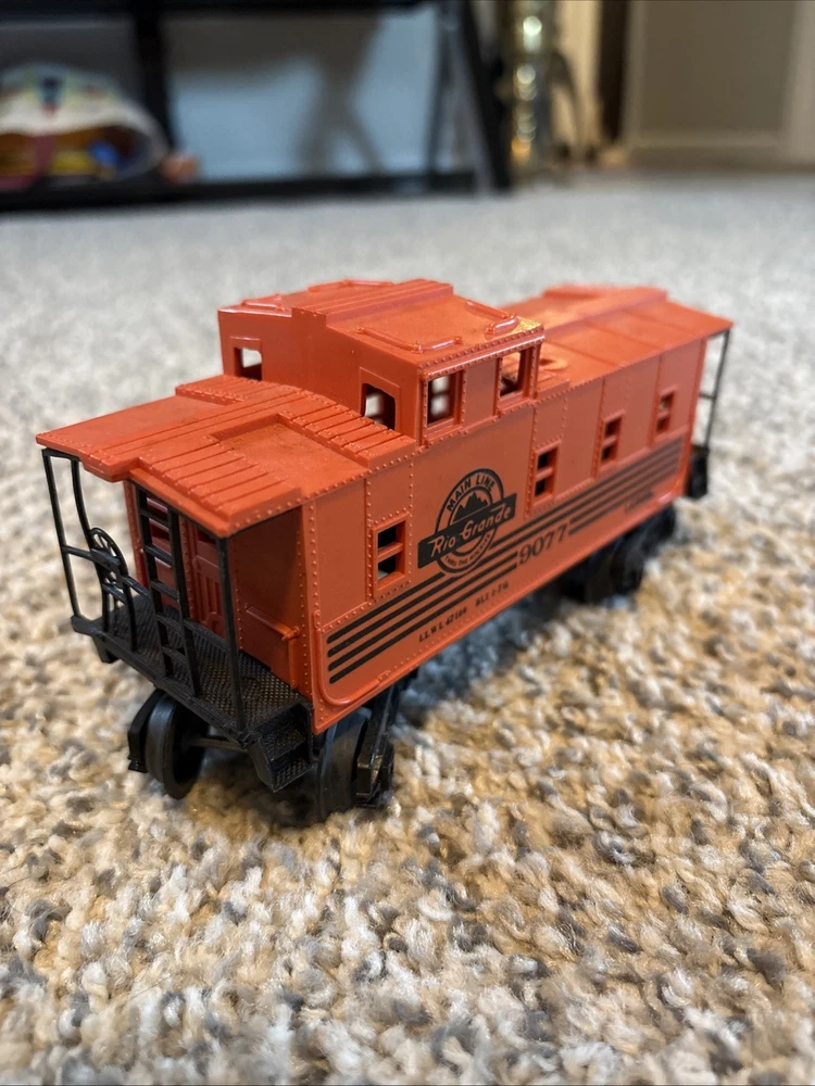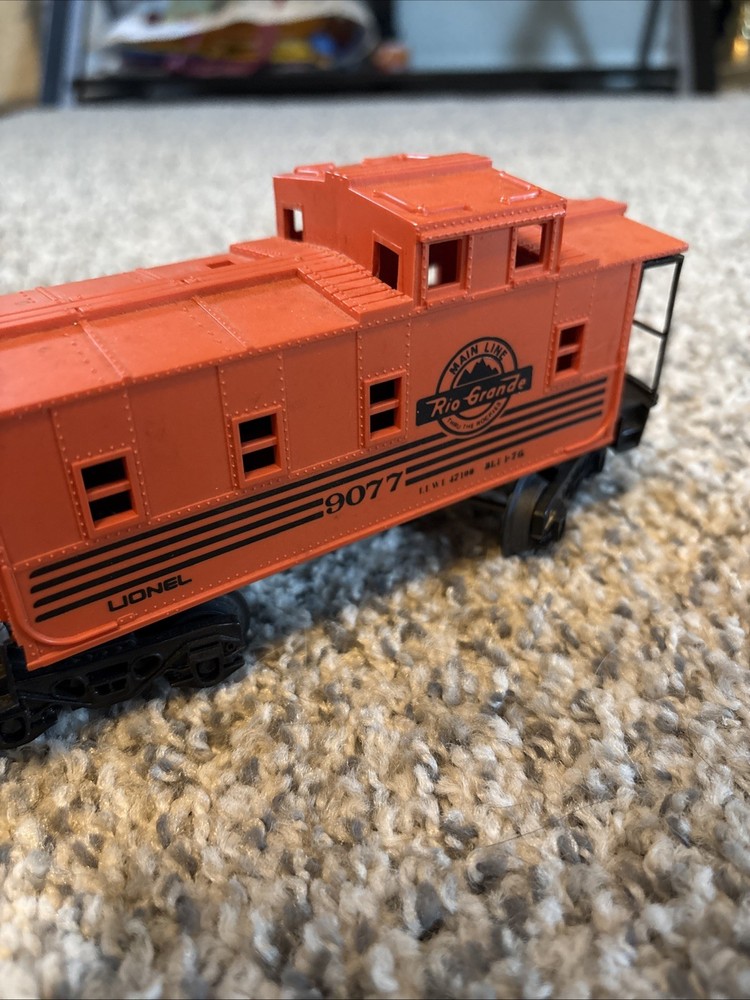This O gauge Lionel #9077 Rio Grande caboose is a great addition to any model railroad collection. With its vibrant orange color and detailed design, it will make a great display piece or be a fun caboose to incorporate into your layout. Made of durable plastic, it's built to last and endure the rigors of playtime. The caboose features the iconic Rio Grande corporate roadname and falls under the Transportation theme. Don't miss out on the chance to add this Lionel caboose to your collection today!