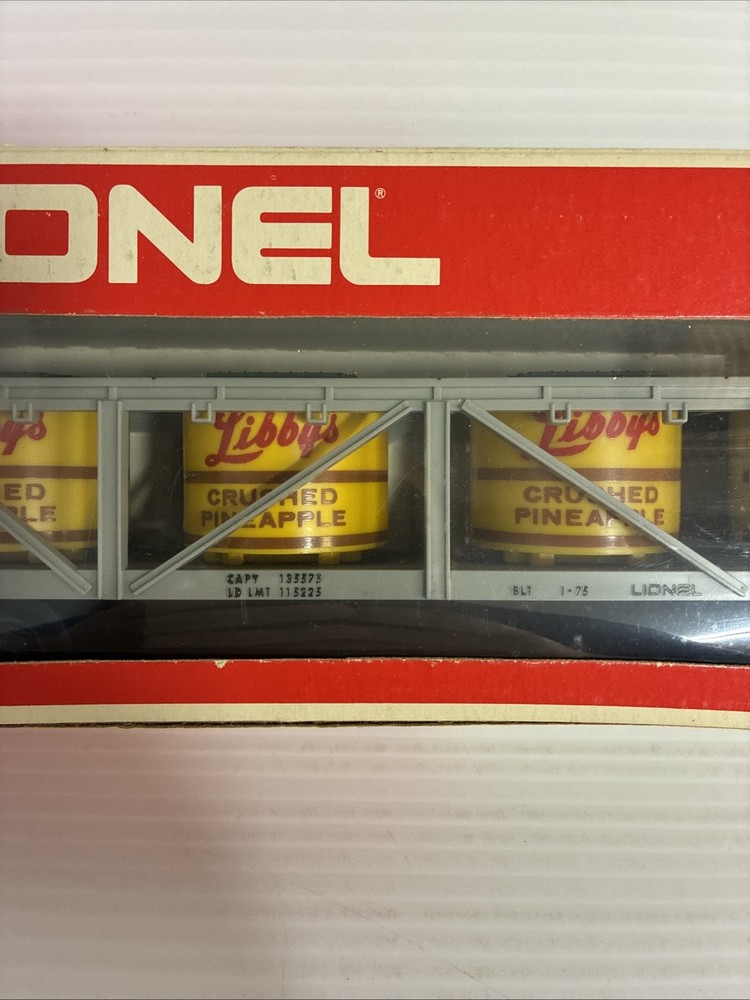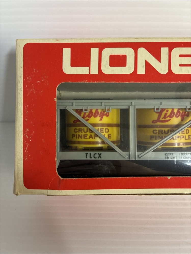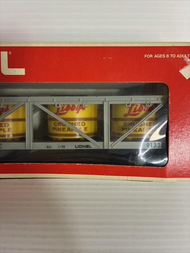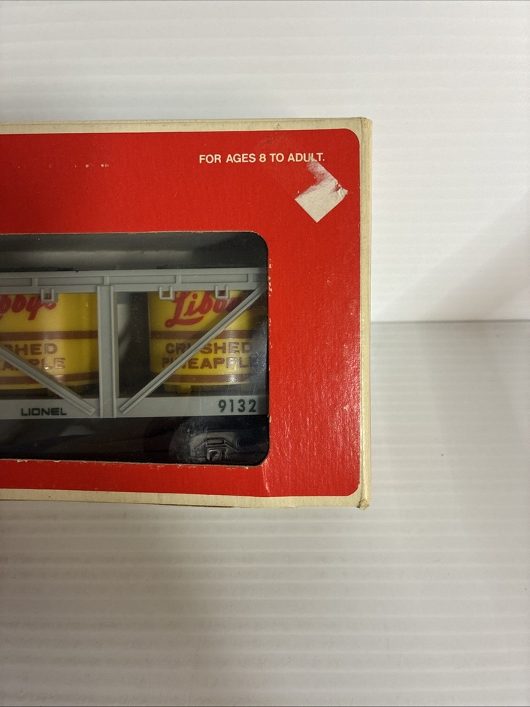 The Lionel 6-9132 O Gauge Libbys Crushed Pineapple Vat Car is a plastic freight car designed for model railroads. This gray-colored car is part of the O gauge size, making it suitable for collectors and hobbyists aged 17 years and up. With the brand name of Lionel, known for producing high-quality model train items, this crushed pineapple vat car is a unique and detailed addition to any train layout. Please see photos for condition.