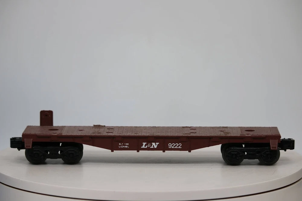 Lionel 6-9222 MPC ERA O Gauge L&N Flatcar SKU#007560 Look closely at the pictures to see further details. We ships USPS PLEASE see photos for detailed condition!! . PLEASE LOOK AT THE PHOTOS CAREFULLY BEFORE PURCHASING!! If you are purchasing more than one item from us and would like combined shipping, PLEASE request an adjusted invoice from us while still in the cart and BEFORE paying. Ebay does not usually calculate combined shipping accurately and you might get overcharged. Please be aware that when we photograph items, we use lighting that will show the details well. Although we try to present the product as accurately as possible, the lighting may affect the overall look of the item by appearing lighter/darker or possibly a different hue than the actual item. Depending on the type of lighting you have in your home, there may be some differences between the photos and the actual item. If this is a concern of yours, please feel free to request additional photos made in natural lighting or ask for a more detailed description of the item PRIOR TO PURCHASE! PLEASE NOTE: We greatly appreciate your interest in our item for sale. We look forward to a pleasant, quick and satisfying transaction for everybody, so please note the following information before bidding. Thank you! ITEM DESCRIPTIONS: * We will try to describe items well and provide plenty of photos. Please review these carefully before bidding or purchasing. * Only the items pictured and described are what you will receive when purchased. * We will occasionally offer an item clearly marked "AS-IS". This means that we are not sure if it works because we are unable to test it for whatever reason. We will offer these at a discounted price then a similar "working" item. It is possible that these items will work fine, but it also is possible that these items are more useful for their parts. Please only bid on or purchase these items if you are well aware of this, as we will only provide refunds of actual item price (no shipping cost refunds) for these items. * If you have any questions that aren't addressed by the descriptions or photos, please feel free to ask before you bid. * There may be pieces that are missing or broken including, but not limited to, couplers, brake wheels, steps, ladders, railings, etc. May need detailed cleaning SHIPPING: * We usually do not offer shipping to international addresses, but ARE WILLING TO TAKE CONSIDERATIONS. * We try to pack items as carefully as possible, but damage may occur during shipping. If you receive an item that was damaged in shipping, please contact us and we will work with you to resolve the problem. * We will combine shipping costs for all items the same buyer purchases from us within 2 days. Please wait to pay for items until you're done shopping with us. Please contact us if you're expecting to buy more items from us, or to have us adjust the shipping costs. * We will usually ship items out within 24 hours of payment being received Sunday through Friday at noon. We will notify the buyer if there will be a delay in shipping for some reason. Please allow additional time for holidays and weekends when the post office is closed. If payment is received after noon (EST) on Friday, the item might not be shipped until the following Monday. * We do try to recycle shipping materials as much as possible. RETURNS: We abide by eBay's Money Back Guarantee. We definitely want our customers to be happy with their purchase! You may return an item within 30 days of receiving it with the following guidelines: * If the item is defective or damaged (unless we clearly marked the listing "AS-IS"), the buyer will receive a full refund after the buyer returns it and it is received by us. Customers who falsely claim their item is defective, damaged, or not as described in order to receive a full refund and free return shipping will be permanently blocked from making future purchases from us. * If the item is as described (including "AS-IS" items) and the buyer decides for any other reason than defective/damaged to return it, only the actual price of the item will be refunded once it has been returned and it is received by us. The buyer will be asked to pay all original and return shipping charges. This includes all reasons other than defective/damaged, including wrong size, wrong type, changed mind, etc. All "AS-IS" items will fall into this category of return. Please make sure the item is what you want before purchasing it. * Please contact us before initiating a refund request. FEEDBACK: We always leave feedback at the end of transaction. We consider the transaction to be over when we receive feedback from the buyer confirming the item arrived satisfactorily. If you are unsatisfied with your purchase please contact us before leaving neutral or negative feedback. WE APPRECIATE POSITIVE FEEDBACK IF YOU ARE SATISFIED WITH YOUR PURCHASE! THANK YOU FOR YOUR INTEREST IN THIS ITEM!