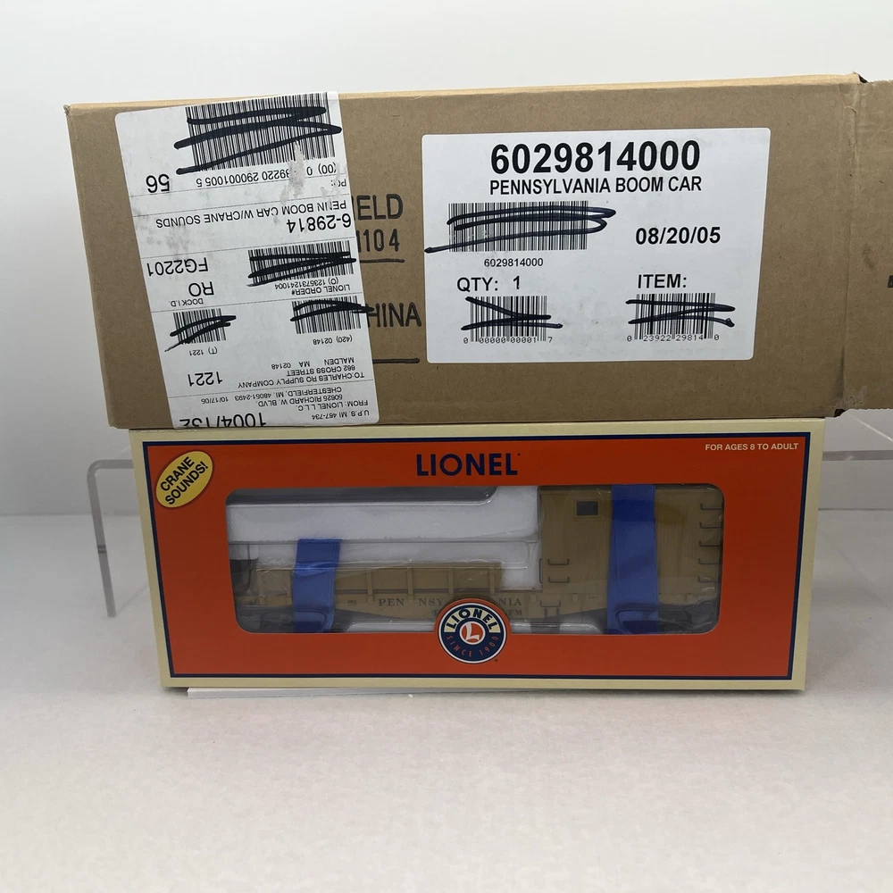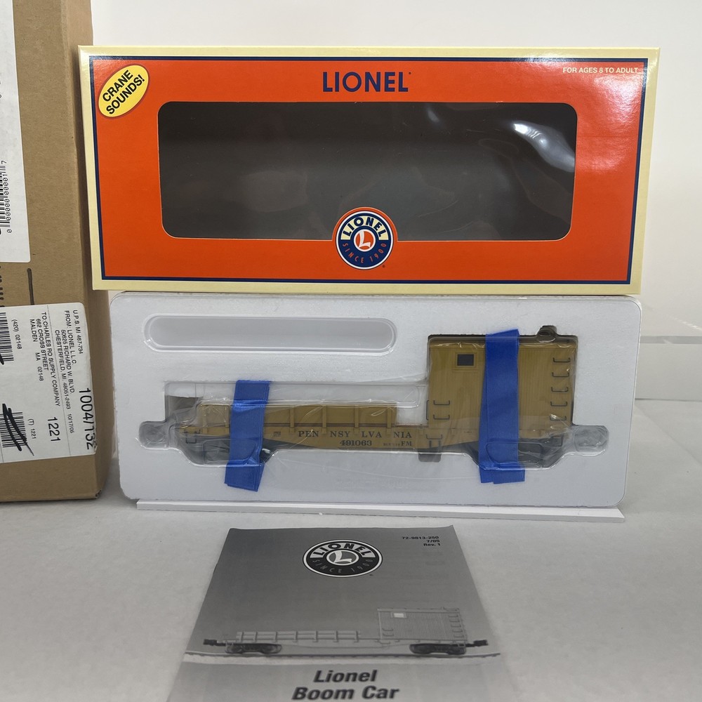 LIONEL #491063 PENNSYLVANIA BOOM CAR WITH SOUNDS O GAUGE THREE RAIL 6-29814 NEW!! ORIGINAL BOX. SEALED. SHIPPING BOX INCLUDED. ADDITIONAL FEATURES: Realistic sound effects including steam engine chuffing, whistle, couplers and crew dialog Die-cast metal trucks and operating couplers Die-cast metal flatcar Wood flatcar deck Minimum Curve: O-31 OPERATING CARS Lights, sound, action Die-cast metal trucks and operating couplers Classic reissues All-new innovative designs Perfect additions to Lionel train sets Minimum Curve: O-27 (except where noted) PRODUCT SPECIFICATIONS Rail Line: Pennsylvania Gauge: Standard O Scale Brand: Lionel Min Curve: O-31 Dimensions: Length: 11 1/4” WILL BE PACKED TO ENSURE SAFE DELIVERY! Winning US bidder receives FREE SHIPPING USPS Priority UPS! Canada Priority shipping is available . All other countries please email for a mailing quote. Thanks for looking! I ship everyday!!!!