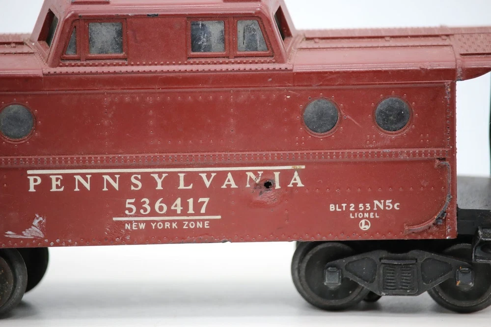 Lionel O Gauge Pennsylvania 536417 New York Zone Caboose SKU#005938 Doesn’t light up, missing pieces for that functionality Look closely at the pictures to see further details. We ships USPS PLEASE see photos for detailed condition!! . PLEASE LOOK AT THE PHOTOS CAREFULLY BEFORE PURCHASING!! If you are purchasing more than one item from us and would like combined shipping, PLEASE request an adjusted invoice from us while still in the cart and BEFORE paying. Ebay does not usually calculate combined shipping accurately and you might get overcharged. Please be aware that when we photograph items, we use lighting that will show the details well. Although we try to present the product as accurately as possible, the lighting may affect the overall look of the item by appearing lighter/darker or possibly a different hue than the actual item. Depending on the type of lighting you have in your home, there may be some differences between the photos and the actual item. If this is a concern of yours, please feel free to request additional photos made in natural lighting or ask for a more detailed description of the item PRIOR TO PURCHASE! PLEASE NOTE: We greatly appreciate your interest in our item for sale. We look forward to a pleasant, quick and satisfying transaction for everybody, so please note the following information before bidding. Thank you! ITEM DESCRIPTIONS: * We will try to describe items well and provide plenty of photos. Please review these carefully before bidding or purchasing. * Only the items pictured and described are what you will receive when purchased. * We will occasionally offer an item clearly marked "AS-IS". This means that we are not sure if it works because we are unable to test it for whatever reason. We will offer these at a discounted price then a similar "working" item. It is possible that these items will work fine, but it also is possible that these items are more useful for their parts. Please only bid on or purchase these items if you are well aware of this, as we will only provide refunds of actual item price (no shipping cost refunds) for these items. * If you have any questions that aren't addressed by the descriptions or photos, please feel free to ask before you bid. * There may be pieces that are missing or broken including, but not limited to, couplers, brake wheels, steps, ladders, railings, etc. May need detailed cleaning SHIPPING: * We usually do not offer shipping to international addresses, but ARE WILLING TO TAKE CONSIDERATIONS. * We try to pack items as carefully as possible, but damage may occur during shipping. If you receive an item that was damaged in shipping, please contact us and we will work with you to resolve the problem. * We will combine shipping costs for all items the same buyer purchases from us within 2 days. Please wait to pay for items until you're done shopping with us. Please contact us if you're expecting to buy more items from us, or to have us adjust the shipping costs. * We will usually ship items out within 24 hours of payment being received Sunday through Friday at noon. We will notify the buyer if there will be a delay in shipping for some reason. Please allow additional time for holidays and weekends when the post office is closed. If payment is received after noon (EST) on Friday, the item might not be shipped until the following Monday. * We do try to recycle shipping materials as much as possible. RETURNS: We abide by eBay's Money Back Guarantee. We definitely want our customers to be happy with their purchase! You may return an item within 30 days of receiving it with the following guidelines: * If the item is defective or damaged (unless we clearly marked the listing "AS-IS"), the buyer will receive a full refund after the buyer returns it and it is received by us. Customers who falsely claim their item is defective, damaged, or not as described in order to receive a full refund and free return shipping will be permanently blocked from making future purchases from us. * If the item is as described (including "AS-IS" items) and the buyer decides for any other reason than defective/damaged to return it, only the actual price of the item will be refunded once it has been returned and it is received by us. The buyer will be asked to pay all original and return shipping charges. This includes all reasons other than defective/damaged, including wrong size, wrong type, changed mind, etc. All "AS-IS" items will fall into this category of return. Please make sure the item is what you want before purchasing it. * Please contact us before initiating a refund request. FEEDBACK: We always leave feedback at the end of transaction. We consider the transaction to be over when we receive feedback from the buyer confirming the item arrived satisfactorily. If you are unsatisfied with your purchase please contact us before leaving neutral or negative feedback. WE APPRECIATE POSITIVE FEEDBACK IF YOU ARE SATISFIED WITH YOUR PURCHASE! THANK YOU FOR YOUR INTEREST IN THIS ITEM!