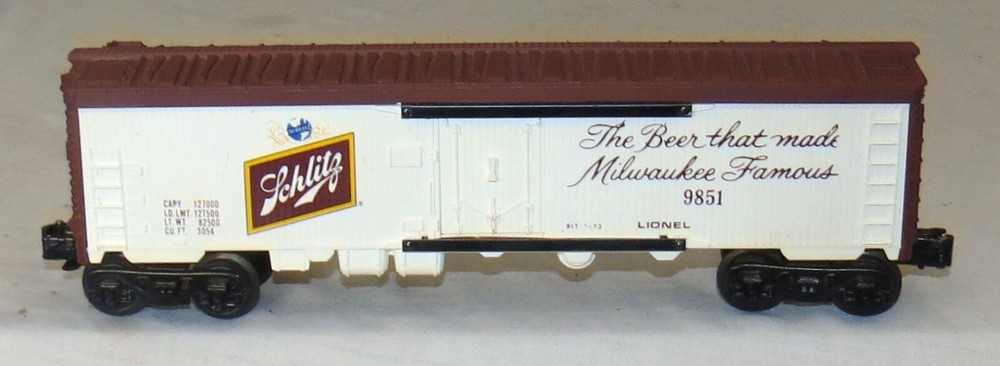 Lionel O Gauge Schlitz 9851 Reefer 1-73 Excellent. Wheels rotate fine. Both couplings work fine. No physical damage. -------------------------------------------------------------------- We try to declare all issues. Any white spots in the pictures that have not been mentioned are more than likely glare from the camera flash, but if you have any doubts, please don't hesitate to ask. Please look at our other auctions, and especially our ebay store items, and save on shipping with multiple wins Please email us with any questions. Honest Shipping : We do not insult your intelligence by hiding the shipping costs in the price of our items, and then offering "free" shipping - trying to fool you into thinking that we are absorbing the shipping costs. What nonsense! Our shipping costs are based on an estimate of the shipper's rates, ebay shipping fees, plus a small handling charge. If you can find the same item with a cheaper total cost - purchase price plus shipping ? anywhere on the web - please contact us. We cannot guarantee to beat it (because of distance-based shipping), but will give it our best shot. Please be sure that you understand, and are comfortable with, the total costs before making your purchase. If you have any questions - please ask first. Combined Shipping: We always offer combined shipping for multiple purchases. Please add your purchases to your ebay "cart". When you have completed your purchases, (either multiple items from a single listing, or items from two or more listings), please contact us, using the "Requests total from seller" button, and we will generate a final combined-shipping invoice.. Note: You will possibly receive an earlier invoice (or invoices) generated automatically by ebay. These are accurate for single item purchases, but often inaccurate for multiple items, due to limitations with ebay's shipping calculator. Our combined shipping invoice will include a note stating that it reflects combined shipping. If you have any doubts - just ask. Shipping Methods: Unless otherwise noted, for each item we offer three forms of shipping: 1. Free: Personal pick-up: You can collect your purchase in San Jose, CA - with zero shipping charges. 2. Economy: One of : USPS Ground Advantage if the package qualifies, or USPS Media Mail if the package qualifies. 3. Expedited: for example, USPS Priority Express Mail We are always willing to at least consider any other valid shipping method - just ask. If the costs allow it, we will promote your package to a faster service where we can, at no additional charge to you. If shipping is not to a USA contiguous 48 state street address, or you request a faster or other shipping method, such as UPS Air, or Express Mail, then shipping costs may vary. Please allow at least 14 business days for delivery to the contiguous 48 USA states. Media Mail typically takes longer. More specific estimates are available on the USPS web site. For AK and HI , USPS Priority Mail should take 4 days or fewer, but USPS offers no time estimates for Parcel Post. Books, other printed matter, and media: We typically ship books, CDs, videos, and the like by Media Mail. This can be considerably slower than other services. If you need your book quickly, please let us know, and we will re-quote the shipping, typically at a higher cost. International Buyers - Please note: International mail is often slower than the estimates available on the USPS web site, so customers should allow a minimum of 14 days for airmail delivery - longer if your parcel is held in incoming customs. USPS no longer offers any international surface mail, or M-bag service. Air Mail is the only remaining option for international shipments. International buyers should double-check for mailing costs before bidding. Also: Import duties, taxes and charges are not included in the item price or shipping charges. These charges are the buyer's responsibility, so please check with your country's customs office to determine what these additional costs will be prior to bidding/buying. Additional charges are sometimes collected by the delivering freight (shipping) company on delivery or pick-up - do not confuse them with additional shipping charges. We do not mark merchandise with lower values, or mark items as "gifts" - US and International government regulations prohibit such behaviour. Questions. Please email us with any questions: If you have any questions, please ask at least 24 hours before end of auction as we have other commitments that require our attention, and are not always at the computer. We pack with care but after your parcel is delivered to the carrier we have no control over delivery times. Please ask all questions before bidding. Returns. Unless otherwise noted, we always accept returns - for any reason. The item must be returned within 30 days with all original packaging . The purchase price will be refunded when the item is returned in the same condition as it was shipped . If there is a relevant error in the listing description, we will also refund shipping in both directions. Problems & Issues. Please always contact us with any problems before leaving any feedback or DSRs. We will always do everything we can to resolve any issue. Once feedback has been left it cannot be changed, and we cannot guarantee to resolve your problems. Feedback: **We always work to earn 5-star feedback from you. If you have any concerns about this transaction, please contact us, preferably before bidding, but definitely before leaving feedback, so that we can do everything possible to resolve the issue.** If the transaction has gone well Positive feedback and 5-star DSRs - for each item, if you have bought more than one - is appreciated. Payment Method: For shipped purchases, all major credit card payments through Paypal. We cannot accept credit card payments directly. Payment Timing: Unless negotiated before the purchase is made, payment must be received within seven days of the listing's close. All non-payi