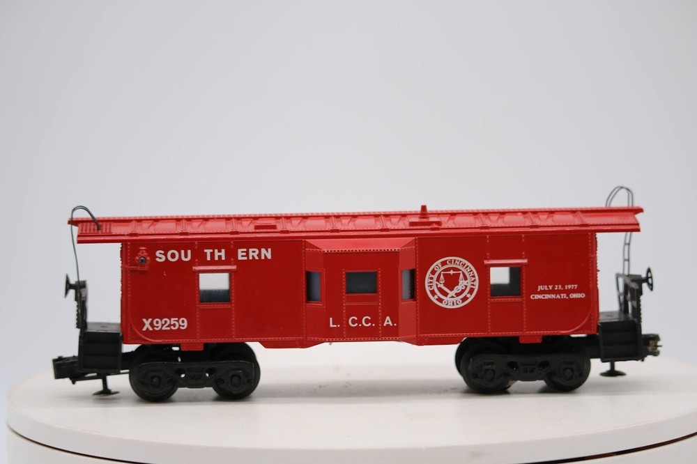 Lionel O Gauge Southern X9259 Caboose Cincinnati, Ohio SKU 002284 Look closely at the pictures to see further details. We ships USPS PLEASE see photos for detailed condition!! There may be pieces that are missing or broken including, but not limited to, couplers, brake wheels, steps, ladders, railings, etc. May need detailed cleaning. PLEASE LOOK AT THE PHOTOS CAREFULLY BEFORE PURCHASING!! If you are purchasing more than one item from us and would like combined shipping, PLEASE request an adjusted invoice from us while still in the cart and BEFORE paying. Ebay does not usually calculate combined shipping accurately and you might get overcharged. Please be aware that when we photograph items, we use lighting that will show the details well. Although we try to present the product as accurately as possible, the lighting may affect the overall look of the item by appearing lighter/darker or possibly a different hue than the actual item. Depending on the type of lighting you have in your home, there may be some differences between the photos and the actual item. If this is a concern of yours, please feel free to request additional photos made in natural lighting or ask for a more detailed description of the item PRIOR TO PURCHASE! PLEASE NOTE: We greatly appreciate your interest in our item for sale. We look forward to a pleasant, quick and satisfying transaction for everybody, so please note the following information before bidding. Thank you! ITEM DESCRIPTIONS: * We will try to describe items well and provide plenty of photos. Please review these carefully before bidding or purchasing. * Only the items pictured and described are what you will receive when purchased. * We will occasionally offer an item clearly marked "AS-IS". This means that we are not sure if it works because we are unable to test it for whatever reason. We will offer these at a discounted price then a similar "working" item. It is possible that these items will work fine, but it also is possible that these items are more useful for their parts. Please only bid on or purchase these items if you are well aware of this, as we will only provide refunds of actual item price (no shipping cost refunds) for these items. * If you have any questions that aren't addressed by the descriptions or photos, please feel free to ask before you bid. SHIPPING: * We offer international shipping, if you have any questions please reach out. * We try to pack items as carefully as possible, but damage may occur during shipping. If you receive an item that was damaged in shipping, please contact us and we will work with you to resolve the problem. * We will combine shipping costs for all items the same buyer purchases from us within 2 days. Please wait to pay for items until you're done shopping with us. Please contact us if you're expecting to buy more items from us, or to have us adjust the shipping costs. * We will usually ship items out within 24 hours of payment being received Sunday through Friday at noon. We will notify the buyer if there will be a delay in shipping for some reason. Please allow additional time for holidays and weekends when the post office is closed. If payment is received after noon (EST) on Friday, the item might not be shipped until the following Monday. * We do try to recycle shipping materials as much as possible. RETURNS: We abide by eBay's Money Back Guarantee. We definitely want our customers to be happy with their purchase! You may return an item within 30 days of receiving it with the following guidelines: * If the item is defective or damaged (unless we clearly marked the listing "AS-IS"), the buyer will receive a full refund after the buyer returns it and it is received by us. Customers who falsely claim their item is defective, damaged, or not as described in order to receive a full refund and free return shipping will be permanently blocked from making future purchases from us. * If the item is as described (including "AS-IS" items) and the buyer decides for any other reason than defective/damaged to return it, only the actual price of the item will be refunded once it has been returned and it is received by us. The buyer will be asked to pay all original and return shipping charges. This includes all reasons other than defective/damaged, including wrong size, wrong type, changed mind, etc. All "AS-IS" items will fall into this category of return. Please make sure the item is what you want before purchasing it. * Please contact us before initiating a refund request. FEEDBACK: We always leave feedback at the end of transaction. We consider the transaction to be over when we receive feedback from the buyer confirming the item arrived satisfactorily. If you are unsatisfied with your purchase please contact us before leaving neutral or negative feedback. WE APPRECIATE POSITIVE FEEDBACK IF YOU ARE SATISFIED WITH YOUR PURCHASE! THANK YOU FOR YOUR INTEREST IN THIS ITEM!