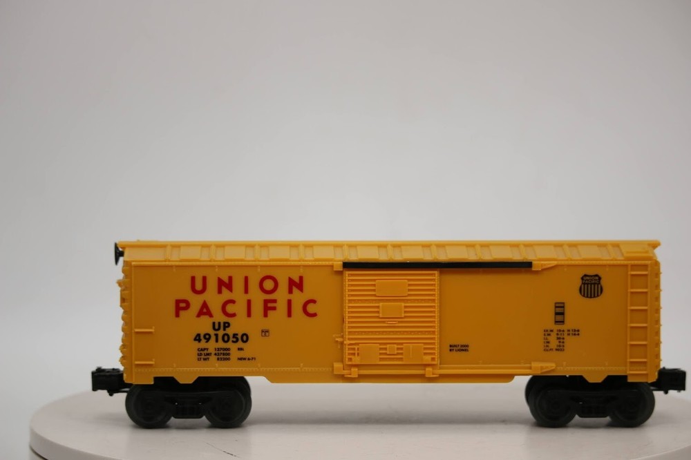 Lionel O Gauge UP 491050 Union Pacific Boxcar SKU#009169 Key Details: Model Type : Boxcar (a type of freight car used for shipping goods). Designed to resemble Union Pacific’s real-life boxcars. Road Name : Union Pacific (UP) Road Number: 491050 Gauge : O Gauge (1:48 Scale) Lionel's O Gauge trains are highly detailed and designed for 3-rail track systems. Features : Durable plastic body construction with vibrant yellow paint and red lettering. Sliding doors on the sides. Die-cast metal trucks and operating couplers for connecting to other cars. Union Pacific Shield Logo and additional printed details like weight capacities. Wheels designed to run on Lionel's traditional O gauge track systems. Era of Production : Lionel has produced various Union Pacific boxcars over the years. The exact release year of this particular boxcar (UP 491050) can depend on the catalog or set it was included in. PLEASE see photos for detailed condition!! PLEASE LOOK AT THE PHOTOS CAREFULLY BEFORE PURCHASING!! If you are purchasing more than one item from us and would like combined shipping, PLEASE request an adjusted invoice from us while still in the cart and BEFORE paying. eBay does not usually calculate combined shipping accurately and you might get overcharged. Please be aware that when we photograph items, we use lighting that will show the details well. Although we try to present the product as accurately as possible, the lighting may affect the overall look of the item by appearing lighter/darker or possibly a different hue than the actual item. Depending on the type of lighting you have in your home, there may be some differences between the photos and the actual item. If this is a concern of yours, please feel free to request additional photos made in natural lighting or ask for a more detailed description of the item PRIOR TO PURCHASE! There may be pieces that are missing or broken including, but not limited too, couplers, brake wheels, steps, ladders, railings, etc. May need detailed cleaning. PLEASE NOTE: We greatly appreciate your interest in our item for sale. We look forward to a pleasant, quick and satisfying transaction for everybody, so please note the following information before bidding. Thank you! ITEM DESCRIPTIONS: * We will try to describe items well and provide plenty of photos. Please review these carefully before bidding or purchasing. * Only the items pictured and described are what you will receive when purchased. * We will occasionally offer an item clearly marked "AS-IS". This means that we are not sure if it works because we are unable to test it for whatever reason. We will offer these at a discounted price than a similar "working" item. It is possible that these items will work fine, but it also is possible that these items are more useful for their parts. Please only bid on or purchase these items if you are well aware of this, as we will only provide refunds of actual item price (no shipping cost refunds) for these items. * If you have any questions that aren't addressed by the descriptions or photos, please feel free to ask before you bid. SHIPPING: * We offer shipping to international shipping * We try to pack items as carefully as possible, but damage may occur during shipping. If you receive an item that was damaged in shipping, please contact us and we will work with you to resolve the problem. * We will combine shipping costs for all items the same buyer purchases from us within 2 days. Please wait to pay for items until you're done shopping with us. Please contact us if you're expecting to buy more items from us, or to have us adjust the shipping costs. * We will usually ship items out within 24 hours of payment being received Sunday through Friday at noon. We will notify the buyer if there will be a delay in shipping for some reason. Please allow additional time for holidays and weekends when the post office is closed. If payment is received after noon (EST) on Friday, the item might not be shipped until the following Monday. * We do try to recycle shipping materials as much as possible. RETURNS: We abide by eBay's Money Back Guarantee. We definitely want our customers to be happy with their purchase! You may return an item within 30 days of receiving it with the following guidelines: * If the item is defective or damaged (unless we clearly marked the listing "AS-IS"), the buyer will receive a full refund after the buyer returns it and it is received by us. Customers who falsely claim their item is defective, damaged, or not as described in order to receive a full refund and free return shipping will be permanently blocked from making future purchases from us. * If the item is as described (including "AS-IS" items) and the buyer decides for any other reason than defective/damaged to return it, only the actual price of the item will be refunded once it has been returned and it is received by us. The buyer will be asked to pay all original and return shipping charges. This includes all reasons other than defective/damaged, including wrong size, wrong type, changed mind, etc. All "AS-IS" items will fall into this category of return. Please make sure the item is what you want before purchasing it. * Please contact us before initiating a refund request, issues, questions or concerns you may have. FEEDBACK: We always leave feedback at the end of transaction. We consider the transaction to be over when we receive feedback from the buyer confirming the item arrived satisfactorily. If you are unsatisfied with your purchase please contact us before leaving neutral or negative feedback. WE APPRECIATE POSITIVE FEEDBACK IF YOU ARE SATISFIED WITH YOUR PURCHASE! THANK YOU FOR YOUR INTEREST IN THIS ITEM!