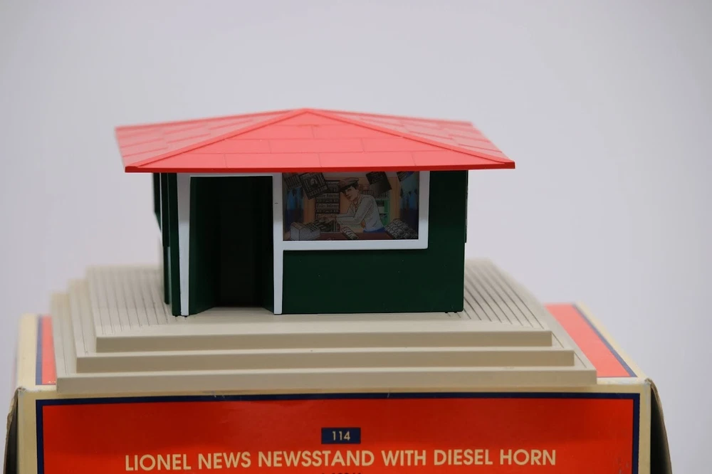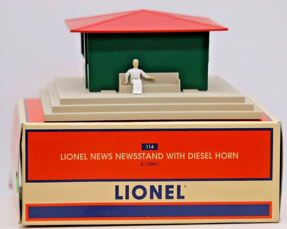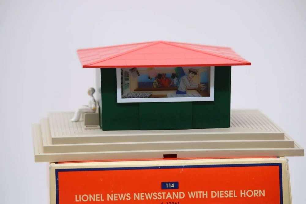 Lionel O Scale Operating Newsstand w/ Diesel Horn Item 6-12961 LN Look closely at the pictures to see further details. We ships USPS PLEASE LOOK AT THE PHOTOS CAREFULLY BEFORE PURCHASING!! If you are purchasing more than one item from us and would like combined shipping, PLEASE request an adjusted invoice from us while still in the cart and BEFORE paying. Ebay does not usually calculate combined shipping accurately and you might get overcharged. Please be aware that when we photograph items, we use lighting that will show the details well. Although we try to present the product as accurately as possible, the lighting may affect the overall look of the item by appearing lighter/darker or possibly a different hue than the actual item. Depending on the type of lighting you have in your home, there may be some differences between the photos and the actual item. If this is a concern of yours, please feel free to request additional photos made in natural lighting or ask for a more detailed description of the item PRIOR TO PURCHASE! PLEASE see photos for detailed condition!! There may be pieces that are missing or broken including, but not limited to, couplers, brake wheels, steps, ladders, railings, etc. May need detailed cleaning. PLEASE NOTE: We greatly appreciate your interest in our item for sale. We look forward to a pleasant, quick and satisfying transaction for everybody, so please note the following information before bidding. Thank you! ITEM DESCRIPTIONS: * We will try to describe items well and provide plenty of photos. Please review these carefully before bidding or purchasing. * Only the items pictured and described are what you will receive when purchased. * We will occasionally offer an item clearly marked "AS-IS". This means that we are not sure if it works because we are unable to test it for whatever reason. We will offer these at a discounted price then a similar "working" item. It is possible that these items will work fine, but it also is possible that these items are more useful for their parts. Please only bid on or purchase these items if you are well aware of this, as we will only provide refunds of actual item price (no shipping cost refunds) for these items. * If you have any questions that aren't addressed by the descriptions or photos, please feel free to ask before you bid. SHIPPING: * We offer international shipping, if you have any questions please reach out. * We try to pack items as carefully as possible, but damage may occur during shipping. If you receive an item that was damaged in shipping, please contact us and we will work with you to resolve the problem. * We will combine shipping costs for all items the same buyer purchases from us within 2 days. Please wait to pay for items until you're done shopping with us. Please contact us if you're expecting to buy more items from us, or to have us adjust the shipping costs. * We will usually ship items out within 24 hours of payment being received Sunday through Friday at noon. We will notify the buyer if there will be a delay in shipping for some reason. Please allow additional time for holidays and weekends when the post office is closed. If payment is received after noon (EST) on Friday, the item might not be shipped until the following Monday. * We do try to recycle shipping materials as much as possible. RETURNS: We abide by eBay's Money Back Guarantee. We definitely want our customers to be happy with their purchase! You may return an item within 30 days of receiving it with the following guidelines: * If the item is defective or damaged (unless we clearly marked the listing "AS-IS"), the buyer will receive a full refund after the buyer returns it and it is received by us. Customers who falsely claim their item is defective, damaged, or not as described in order to receive a full refund and free return shipping will be permanently blocked from making future purchases from us. * If the item is as described (including "AS-IS" items) and the buyer decides for any other reason than defective/damaged to return it, only the actual price of the item will be refunded once it has been returned and it is received by us. The buyer will be asked to pay all original and return shipping charges. This includes all reasons other than defective/damaged, including wrong size, wrong type, changed mind, etc. All "AS-IS" items will fall into this category of return. Please make sure the item is what you want before purchasing it. * Please contact us before initiating a refund request. FEEDBACK: We always leave feedback at the end of transaction. We consider the transaction to be over when we receive feedback from the buyer confirming the item arrived satisfactorily. If you are unsatisfied with your purchase please contact us before leaving neutral or negative feedback. WE APPRECIATE POSITIVE FEEDBACK IF YOU ARE SATISFIED WITH YOUR PURCHASE! THANK YOU FOR YOUR INTEREST IN THIS ITEM!