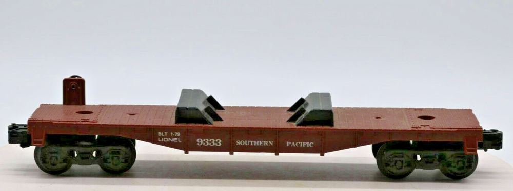 Lionel O Scale Southern Pacific Flat Car 9333 1:48 Gauge No Load Look closely at the pictures to see further details. We ships USPS PLEASE LOOK AT THE PHOTOS CAREFULLY BEFORE PURCHASING!! If you are purchasing more than one item from us and would like combined shipping, PLEASE request an adjusted invoice from us while still in the cart and BEFORE paying. Ebay does not usually calculate combined shipping accurately and you might get overcharged. Please be aware that when we photograph items, we use lighting that will show the details well. Although we try to present the product as accurately as possible, the lighting may affect the overall look of the item by appearing lighter/darker or possibly a different hue than the actual item. Depending on the type of lighting you have in your home, there may be some differences between the photos and the actual item. If this is a concern of yours, please feel free to request additional photos made in natural lighting or ask for a more detailed description of the item PRIOR TO PURCHASE! PLEASE see photos for detailed condition!! There may be pieces that are missing or broken including, but not limited to, couplers, brake wheels, steps, ladders, railings, etc. May need detailed cleaning. PLEASE NOTE: We greatly appreciate your interest in our item for sale. We look forward to a pleasant, quick and satisfying transaction for everybody, so please note the following information before bidding. Thank you! ITEM DESCRIPTIONS: * We will try to describe items well and provide plenty of photos. Please review these carefully before bidding or purchasing. * Only the items pictured and described are what you will receive when purchased. * We will occasionally offer an item clearly marked "AS-IS". This means that we are not sure if it works because we are unable to test it for whatever reason. We will offer these at a discounted price then a similar "working" item. It is possible that these items will work fine, but it also is possible that these items are more useful for their parts. Please only bid on or purchase these items if you are well aware of this, as we will only provide refunds of actual item price (no shipping cost refunds) for these items. * If you have any questions that aren't addressed by the descriptions or photos, please feel free to ask before you bid. SHIPPING: * We offer international shipping, if you have any questions please reach out. * We try to pack items as carefully as possible, but damage may occur during shipping. If you receive an item that was damaged in shipping, please contact us and we will work with you to resolve the problem. * We will combine shipping costs for all items the same buyer purchases from us within 2 days. Please wait to pay for items until you're done shopping with us. Please contact us if you're expecting to buy more items from us, or to have us adjust the shipping costs. * We will usually ship items out within 24 hours of payment being received Sunday through Friday at noon. We will notify the buyer if there will be a delay in shipping for some reason. Please allow additional time for holidays and weekends when the post office is closed. If payment is received after noon (EST) on Friday, the item might not be shipped until the following Monday. * We do try to recycle shipping materials as much as possible. RETURNS: We abide by eBay's Money Back Guarantee. We definitely want our customers to be happy with their purchase! You may return an item within 30 days of receiving it with the following guidelines: * If the item is defective or damaged (unless we clearly marked the listing "AS-IS"), the buyer will receive a full refund after the buyer returns it and it is received by us. Customers who falsely claim their item is defective, damaged, or not as described in order to receive a full refund and free return shipping will be permanently blocked from making future purchases from us. * If the item is as described (including "AS-IS" items) and the buyer decides for any other reason than defective/damaged to return it, only the actual price of the item will be refunded once it has been returned and it is received by us. The buyer will be asked to pay all original and return shipping charges. This includes all reasons other than defective/damaged, including wrong size, wrong type, changed mind, etc. All "AS-IS" items will fall into this category of return. Please make sure the item is what you want before purchasing it. * Please contact us before initiating a refund request. FEEDBACK: We always leave feedback at the end of transaction. We consider the transaction to be over when we receive feedback from the buyer confirming the item arrived satisfactorily. If you are unsatisfied with your purchase please contact us before leaving neutral or negative feedback. WE APPRECIATE POSITIVE FEEDBACK IF YOU ARE SATISFIED WITH YOUR PURCHASE! THANK YOU FOR YOUR INTEREST IN THIS ITEM!