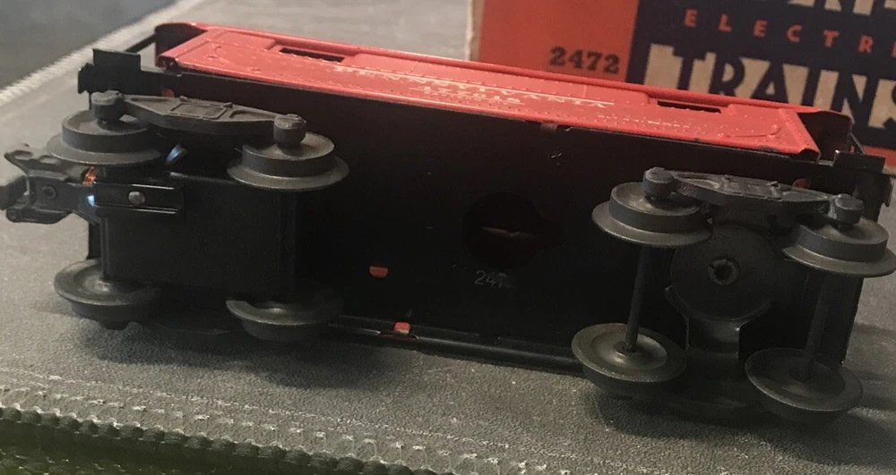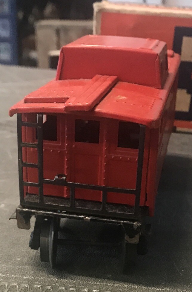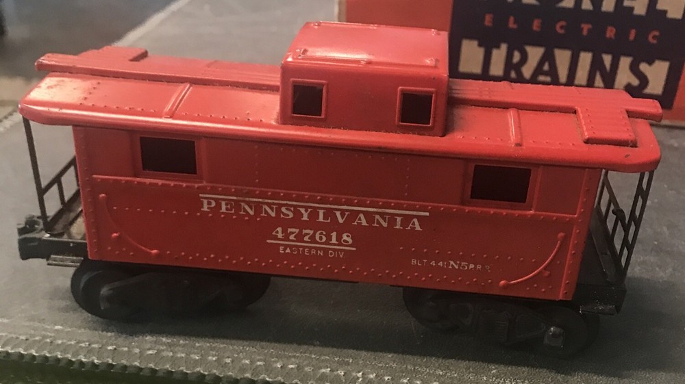 The Lionel 2472 O/27 Gauge Pennsylvanian PRR 477618 Red Tinplate Caboose Car is a classic model train accessory designed for O gauge model railroads. This caboose car features a vibrant red color and is made of durable tinplate material, perfect for collectors and hobbyists alike. It is a detailed replica of the Pennsylvanian caboose car, with authentic markings and design elements that add to the authenticity of any train layout. Perfect for enhancing your collection or adding a touch of nostalgia to your display, this caboose car is a must-have for any model railroad enthusiast.