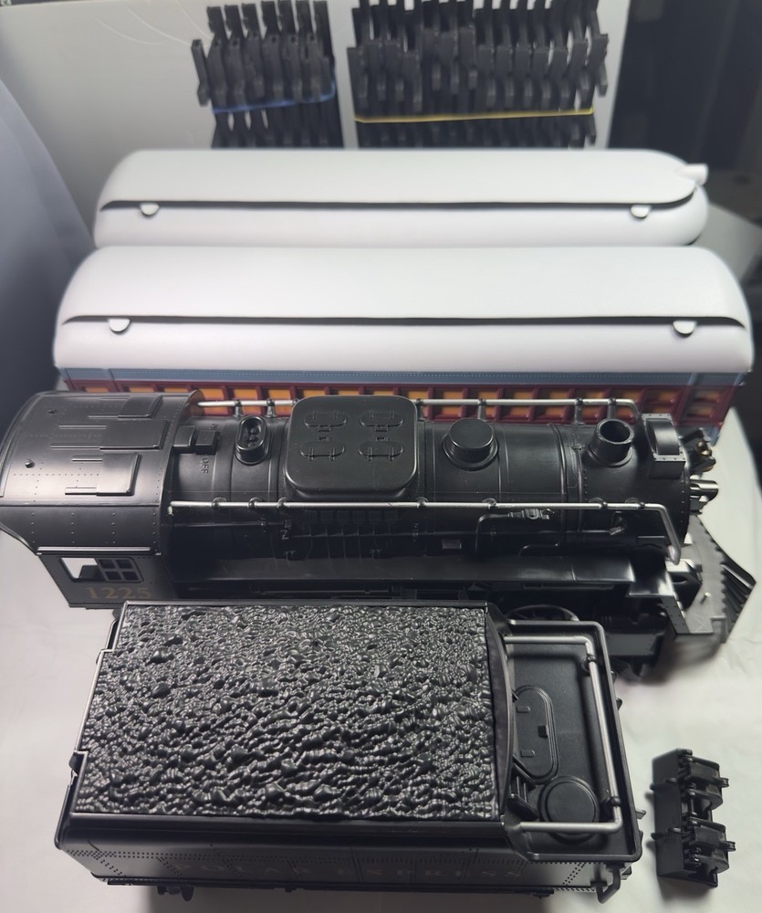 SET INCLUDES – Battery-Powered Steam Locomotive And Tender; Passenger-Coach; Observation Car And 16 curved -7 straight plastic track pieces, Remote Control Not Included You Are Buying What You See In Pictures This Item Comes Exactly As Pictured No Other Part Or Hardware Ship With USPS, I usually ship within 24 hours Please Make Sure Correct Shipping Address If Any Issue With The Item Please Message Me Before Return Or Negative Feedback, Thank You For Visit My STORE If You Have Any questions, Feel Free To Contact Me And I'll Get Back To You As Soon As Possible.