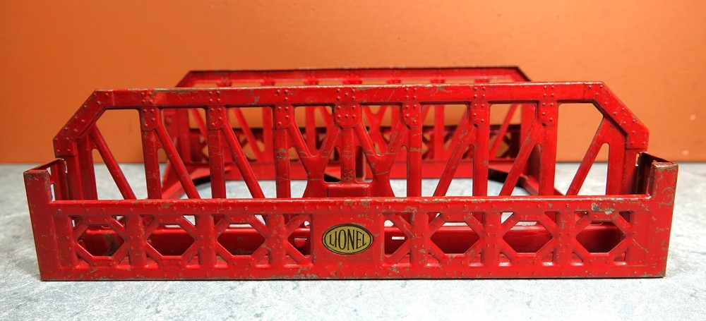Country/Region of Manufacture: United States Features: Painted MPN: 270 gtin13: Does not apply UPC: Does not apply Model: #270 Tinplate Bridge Type: Bridge Age Level: 17 Years & Up Brand: Lionel Era: Prewar Seller Notes: “Complete and undamaged condition. Paint loss from play, no rust.” Theme: Railroad Color: Red Vintage: Yes Material: Metal Set Includes: Bridge Franchise: Lionel Gauge: O