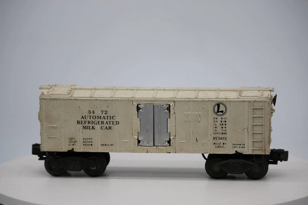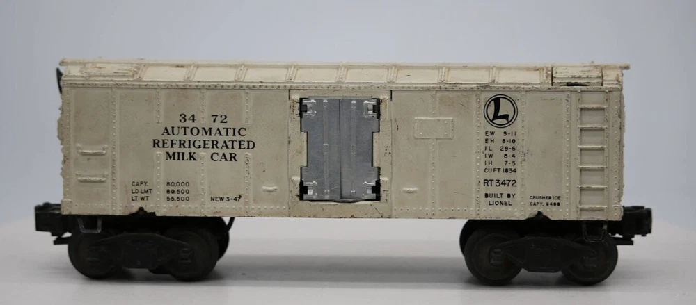Lionel RT 3472 Automatic Refrigerated Crushed ICE Train Car SKU 005932 PLEASE see photos for detailed condition!! There may be pieces that are missing or broken including, but not limited too, couplers, brake wheels, steps, ladders, railings, etc. May need detailed cleaning. PLEASE LOOK AT THE PHOTOS CAREFULLY BEFORE PURCHASING!! If you are purchasing more than one item from us and would like combined shipping, PLEASE request an adjusted invoice from us while still in the cart and BEFORE paying. eBay does not usually calculate combined shipping accurately and you might get overcharged. Please be aware that when we photograph items, we use lighting that will show the details well. Although we try to present the product as accurately as possible, the lighting may affect the overall look of the item by appearing lighter/darker or possibly a different hue than the actual item. Depending on the type of lighting you have in your home, there may be some differences between the photos and the actual item. If this is a concern of yours, please feel free to request additional photos made in natural lighting or ask for a more detailed description of the item PRIOR TO PURCHASE! PLEASE NOTE: We greatly appreciate your interest in our item for sale. We look forward to a pleasant, quick and satisfying transaction for everybody, so please note the following information before bidding. Thank you! ITEM DESCRIPTIONS: * We will try to describe items well and provide plenty of photos. Please review these carefully before bidding or purchasing. * Only the items pictured and described are what you will receive when purchased. * We will occasionally offer an item clearly marked "AS-IS". This means that we are not sure if it works because we are unable to test it for whatever reason. We will offer these at a discounted price than a similar "working" item. It is possible that these items will work fine, but it also is possible that these items are more useful for their parts. Please only bid on or purchase these items if you are well aware of this, as we will only provide refunds of actual item price (no shipping cost refunds) for these items. * If you have any questions that aren't addressed by the descriptions or photos, please feel free to ask before you bid. SHIPPING: * We usually do not offer shipping to international addresses, but ARE WILLING TO TAKE CONSIDERATIONS. * We try to pack items as carefully as possible, but damage may occur during shipping. If you receive an item that was damaged in shipping, please contact us and we will work with you to resolve the problem. * We will combine shipping costs for all items the same buyer purchases from us within 2 days. Please wait to pay for items until you're done shopping with us. Please contact us if you're expecting to buy more items from us, or to have us adjust the shipping costs. * We will usually ship items out within 24 hours of payment being received Sunday through Friday at noon. We will notify the buyer if there will be a delay in shipping for some reason. Please allow additional time for holidays and weekends when the post office is closed. If payment is received after noon (EST) on Friday, the item might not be shipped until the following Monday. * We do try to recycle shipping materials as much as possible. RETURNS: We abide by eBay's Money Back Guarantee. We definitely want our customers to be happy with their purchase! You may return an item within 30 days of receiving it with the following guidelines: * If the item is defective or damaged (unless we clearly marked the listing "AS-IS"), the buyer will receive a full refund after the buyer returns it and it is received by us. Customers who falsely claim their item is defective, damaged, or not as described in order to receive a full refund and free return shipping will be permanently blocked from making future purchases from us. * If the item is as described (including "AS-IS" items) and the buyer decides for any other reason than defective/damaged to return it, only the actual price of the item will be refunded once it has been returned and it is received by us. The buyer will be asked to pay all original and return shipping charges. This includes all reasons other than defective/damaged, including wrong size, wrong type, changed mind, etc. All "AS-IS" items will fall into this category of return. Please make sure the item is what you want before purchasing it. * Please contact us before initiating a refund request. FEEDBACK: We always leave feedback at the end of transaction. We consider the transaction to be over when we receive feedback from the buyer confirming the item arrived satisfactorily. If you are unsatisfied with your purchase please contact us before leaving neutral or negative feedback. WE APPRECIATE POSITIVE FEEDBACK IF YOU ARE SATISFIED WITH YOUR PURCHASE! THANK YOU FOR YOUR INTEREST IN THIS ITEM!