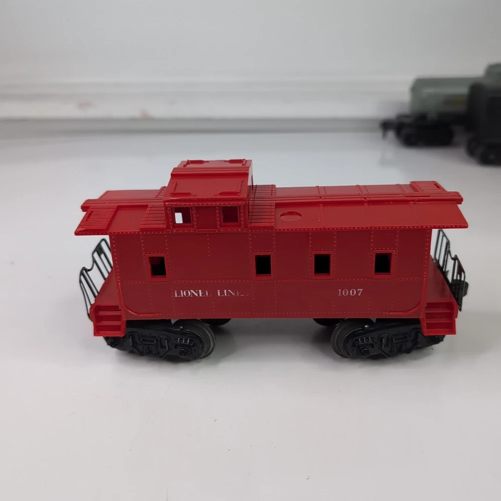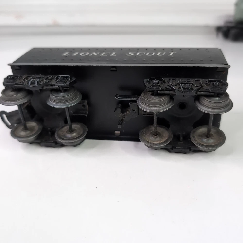 Lionel scout freight train cars. A total of four cars. The scout, cr 1002, car 1005 and caboose 1007. All in use condition. There are scratches on these I had some . Some of the lettering has faded. All the wheels work good.