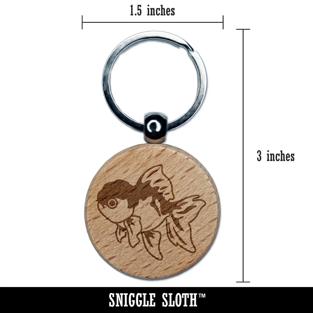 Lionhead Fancy Pet Goldfish Engraved Wood Round Keychain Tag Charm