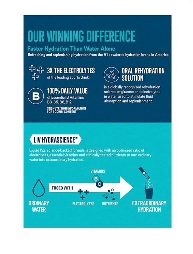 Liquid I.V.® Hydration Multiplier - Passion Fruit | Electrolyte Powder Drink Mix | 1 Pack (16 Servings) HYDRATION MIX: A great-tasting, non-GMO electrolyte drink mix that delivers hydration faster than water alone. GREAT TASTE: Passion Fruit is inspired by the Hawaiian lilikoi, with notes of honey, melon and berry flavors. SCIENCE-BACKED FORMULA: Powered by LIV HYDRASCIENCE, Liquid I.V. is designed with an optimized ratio of electrolytes and clinically tested nutrients. EXTRAORDINARY HYDRATION: Hydration Multiplier has 3x the electrolytes of the leading sports drink, and 8 vitamins and nutrients. It contains 100% of the daily value of 4 B vitamins: B3, B5, B6 and B12. Gluten-free, soy-free, and dairy-free. CONVENIENCE: Single-serving, travel-friendly packets are easy to enjoy on the go. Pour one easy-to-open packet into 16 oz of water, mix or shake, and hydrate. HYDRATION AID: Since 2015, we have donated over 55 million servings of Liquid I.V. to those in need around the globe, and donate over 1% of our revenue to our Impact programs. Shipping We offer FREE shipping on all orders! We ship within Three business days of payment, usually sooner. We use a selection of shipping services such as UPS, FedEx, USPS etc. We only ship to the lower 48 states, no APO/FPO addresses or PO Boxes allowed. Local pickups and combined shipping options are not provided at this time. Return You can return a product for up to 30 days from the date you purchased it. Any product you return must be in the same condition you received it and in the original packaging. Please keep the receipt. Payment We accept payment by any of the following methods: PayPal Please pay as soon as possible after winning an auction, as that will allow us to post your item to you sooner! Feedback Customer satisfaction is very important to us. If you have any problem with your order, please contact us and we will do our best to make you satisfied. Contact Us If you have any queries, please contact us via ebay. We usually respond within 24 hours on weekdays. Please visit our eBay store to check out other items for sale! Thank you for shopping at our store.