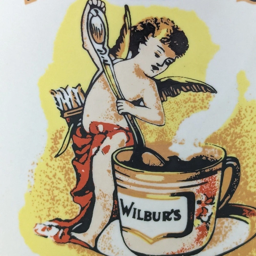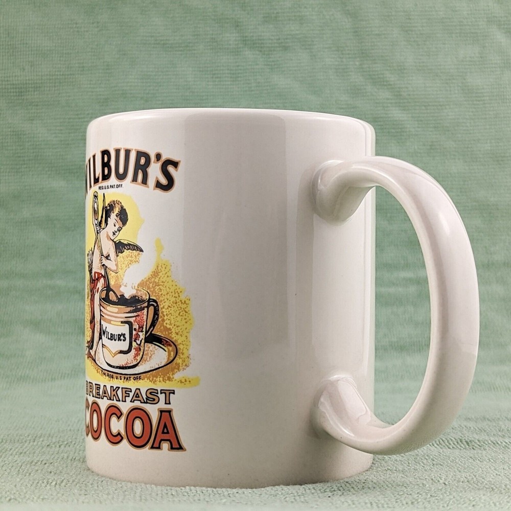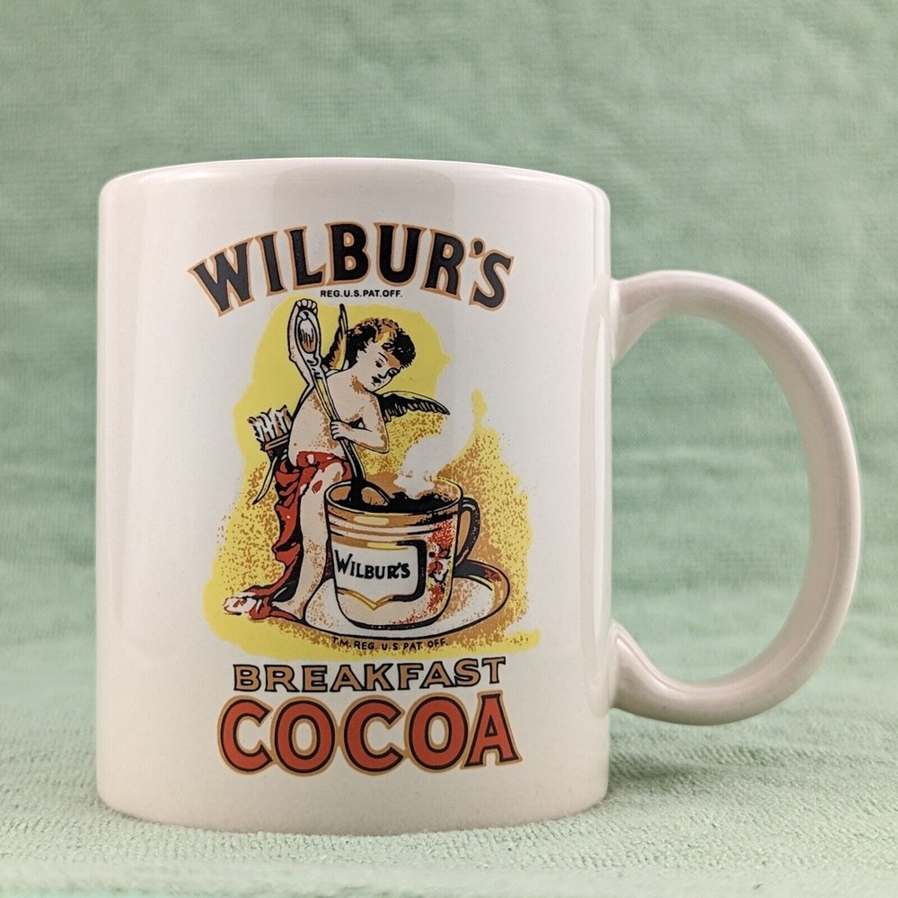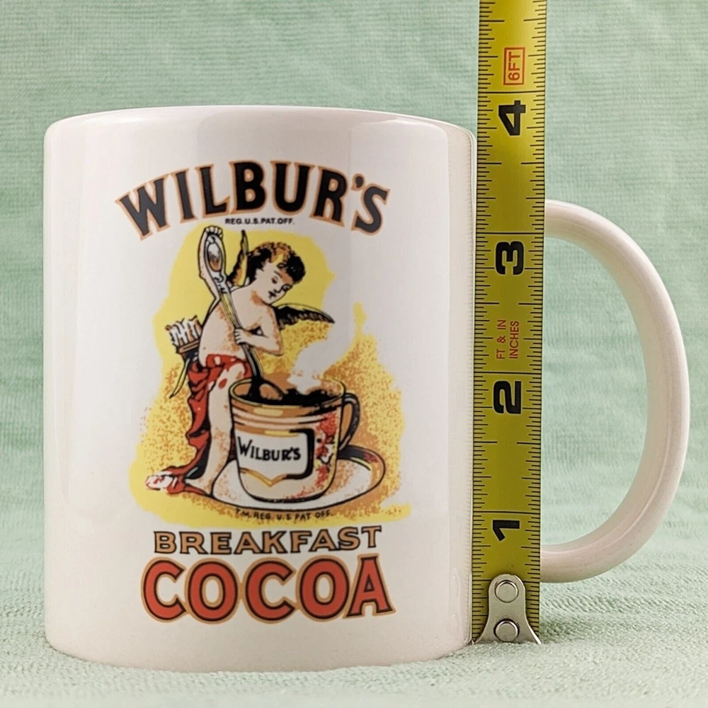 Wilbur's Breakfast Cocoa Liquid Logic Ceramic Coffee Mug • Height: 3.75" • Diameter: 3" • Capacity 8-10 oz • Cream / off-white color featuring Wilbur's Breakfast Cocoa logo Pre-owned mug in excellent used condition with no chips, cracks, or staining. Great for coffee, hot cocoa, tea, or your favorite warm beverage!