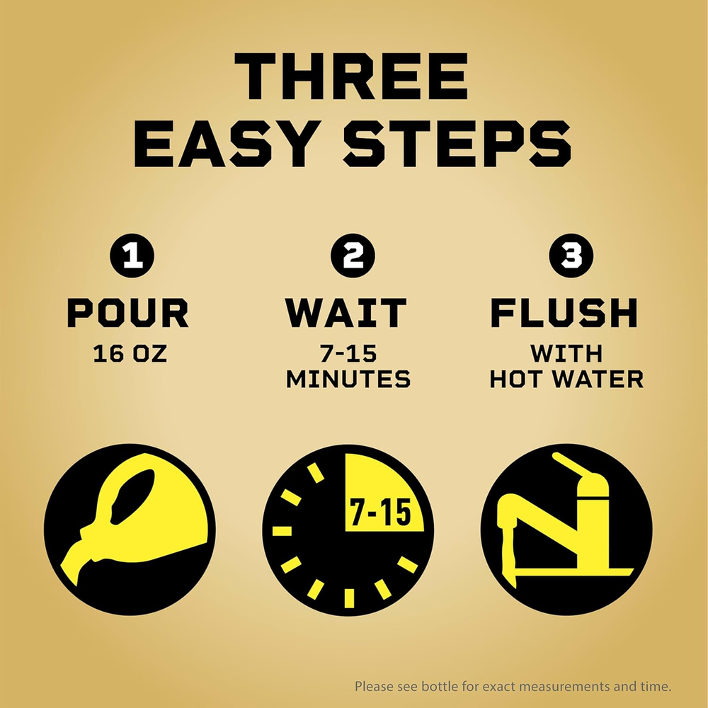 Store New Arrivals Add to Favorite View Feedback Liquid-Plumr Pro-Strength Clog Destroyer, Liquid Drain Cleaner, 80 Fluid Ounces (Package May Vary) Description Item model number 044600002286 Is Discontinued By Manufacturer No Product Dimensions 7.07 x 4.02 x 10.8 inches; 0.01 ounces Product Benefits Removes tough clogs, prevents new clogs and odors, protects pipes, maintains clear pipes and drains Item Weight 0.01 Ounces Department Unisex-Adult State of matter Liquid Scent Unscented Size 80 Fl Oz (Pack of 1) DRAIN CLOG REMOVER: This Liquid-Plumr Pro-Strength Clog Destroyer Gel is fortified with 3X action to protect, prevent and destroy clogs; Packaging may vary WORKS ON MULTIPLE CLOG TYPES: This gel clog remover tackles the toughest clogs from hair (2), grease and soap scum and cuts through standing water to clear total blockages SAFE ON ALL PIPES: Made with Pipeguard, this Liquid-Plumr drain cleaner protects pipes and is safe for septic systems, disposals (3) and pipes, including PVC, plastic, copper and old drain pipes ODOR ELIMINATOR: Pro-Strength Clog Destroyer works great on bathtubs, bathroom sinks, showers, kitchen sinks and garbage disposals (3); Do not use with plunger or in toilets MAINTAIN CLEAR PIPES AND DRAINS: When used monthly, this Liquid-Plumr Pro-Strength Clog Destroyer prevents clogs from coming back (1) in your pipes or drains Get 3X action with Liquid-Plumr Pro-Strength Clog Destroyer. This formula clears the toughest clogs and destroys, protects and prevents clogs (1). Featuring Pipeguard technology to prevent pipes from being damaged as the clog dissolves, this Liquid-Plumr gel dissolves hair (2), grease and more and is safe for all pipes, including garbage disposals (3), plastic, metal, septic systems and older pipes. Whether you have a total blockage or a slow running drain, it works in the bathtub, shower, bathroom sink, kitchen sink and garbage disposal, and when used monthly prevents buildup and stops clogs from forming. (1) With regular monthly use. (2) Based on full hair clogs in lab tests. (3) For garbage disposals, follow same usage directions and flush with disposal running. Avoid all splashing. ABOUT US We offer the best prices around on high quality products. Our E-store includes media such as books, movies, music and games while offering electronics, toys, sporting apparel, clothing, tools, general home, garden items and more. SHIPPING We are always working hard to ensure your package arrives as soon as possible. Please understand that some factors like weather, high postal traffic, and the performance of shipping companies are outside of our control. We offer free shipping to the lower 48 states and ship within 2 business days of payment, usually sooner. We do not accept P.O. Boxes. Please provide a physical address. RETURNS We offer a 30-Day Return Policy on items which you are not completely satisfied with. You have the option for a full-refund or an exchange of the item. No returns are available on items shipped outside of the USA. PAYMENT We accept PayPal. CONTACT US This page content is yet to come Please ad us to your favorite seller and visit again later Thank You
