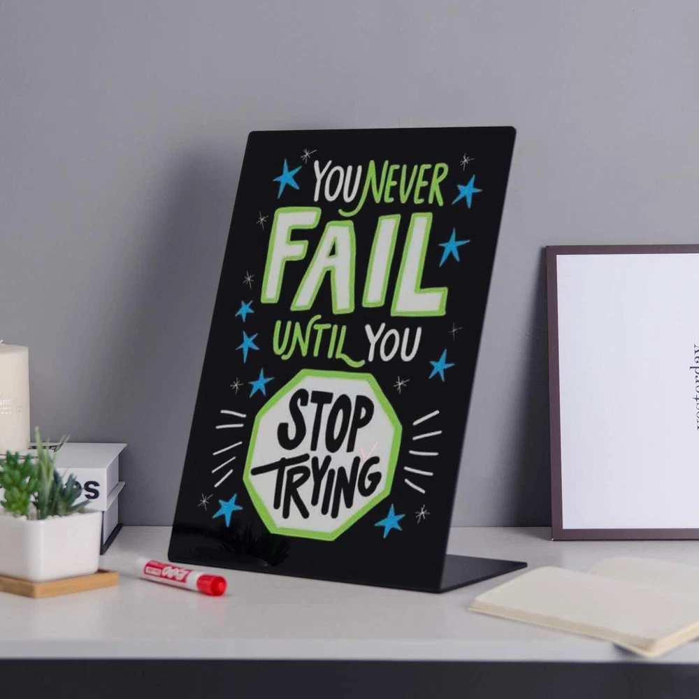 Liry Products Black Acrylic Tabletop Chalkboard Sign Liquid Chalk Markers Modern Desktop Display Board Freestanding Blackboard Wet Erase Menu Memo Wedding Party Events Buffet Restaurant Cafe Boutique MODERN STYLE ACRYLIC DESKTOP SIGN PERFECT FOR DISPLAY & DECORATION: Create vibrant, eye-catching liquid chalk displays for your home, office, or retail space with this chic tabletop blackboard. Crafted from premium acrylic, this frameless desktop board sign boasts a glossy black surface that best brings out the beauty of your chalk art while nicely complementing any minimalist, contemporary, industrial, rustic, or modern country design. VERSATILE CHALKBOARD FOR HOME, BUSINESS, SCHOOL & PARTIES: For Home: Place this sleek blackboard on any desktop or countertop in your dining room, bedroom, living room, kitchen, or office to create personalized designs and brighten up your living space. For Business: This multipurpose acrylic board is excellent for displaying menus, welcoming messages, today’s specials, promotions, and other sales events in your restaurants, bars, boutiques, coffee shops, buffets, and various other retail space. For school: Highly functional in a classroom as a mini blackboard, this desktop chalkboard is a teacher’s perfect choice to display students’ art works and add enormous fun to their classes. Also get this board for your children’s first day of school, giving them an empty canvas where they can exhibit their creativity. For parties: Use this beautifully-crafted acrylic chalkboard at wedding receptions, parties, and celebration events to display welcome messages to your guests! FREESTANDING, EASY TO CLEAN & DURABLE: Coming ready-to-use with a sturdy base, this L-shaped acrylic chalkboard can stand upright on any tabletop or countertop without the need for additional installation. To completely erase liquid marker ink, simply wipe the blackboard surface with a piece of damp cloth. Modern Acrylic Blackboard: Beautifully-crafted acrylic desktop board that match any urban or rustic design, great for creating dazzling liquid chalk board signs for your home, business, and special events Versatile Use: Perfect desktop chalkboard to use in restaurants, cafes, boutiques, classrooms, offices, kitchens, and living rooms to display menus, signs, special deals, promotional events, kids’ art, to-do lists, inspirational messages or calligraphy arts; also excellent for weddings, parties, birthday celebrations, and many other festive events Freestanding Tabletop Board: Specially designed with a sturdy acrylic base, this L-shaped blackboard can stand on its own on any surface, sparing you the trouble of assembly while making it extra convenient to create displays on it Durable & Simple Erase: Made from premium acrylic materials, this charming frameless chalk board is stain- and scratch-resistant, durable, and holding up to frequent use; wipe chalk marker ink from the board surface simply with damp cloth Approximate Dimensions (in inches): 16.8 H x 11.9 W x 6.4 D **Not intended for use with traditional chalk; liquid chalk markers not included** Shipping from the USA All of our products are shipped from the USA, ensuring quick delivery to your destination. Payment We offer the following payment methods: PayPal, credit card, bank transfer, and eBay's secure payment system. Free Shipping & Free Returns Shipping within the USA is FREE. Additionally, any return is absolutely free for you. Risk-Free Purchase You have the option to return an item within 30 days without any justification. We cover the return shipping costs! Fast Shipping We ship immediately upon receipt of payment. Generally, the package is delivered within 2-3 days in the USA. If it takes longer, we will contact you. Quality and Costs Made in Europe, USA, China No customs fees or additional charges Total satisfaction guarantee Invoice with declared VAT available upon request in .pdf format Feedback Your feedback is very important to us. After you pay for your purchase, you will automatically receive positive feedback from us.