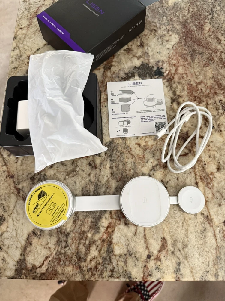 Experience the convenience of charging your devices without the hassle of wires with the Lisen Wireless Charger. This 3-in-1 charger is designed to accommodate multiple devices simultaneously, providing a sleek and efficient charging solution for your phone, smartwatch, and earbuds. Crafted for compatibility, the Lisen Wireless Charger is an essential accessory for anyone looking to streamline their charging routine. Its compact design ensures it's perfect for use at home, in the office, or on the go, keeping your devices powered up and ready for action.