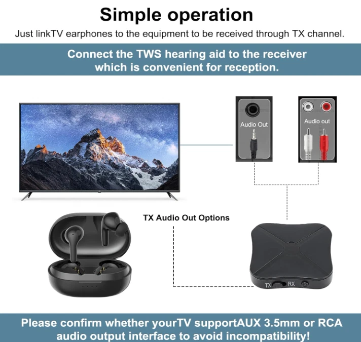 Get Fast! Fast Delivery! Clear Voice & Intelligent noise reduction】Wireless headphones for TV offer superior audio clarity with advanced 16-channel digital sound processing.Wireless headphones for TV allow users to easily adjust the volume,3-level volume easy adjustment and enjoy clear sound.Intelligent chip noise reduction technology can suppress howling and restore clear sound quality without interference in noisy environment. These are also great for people with hearing impairments. 【No Sound Delay】TV headphones wireless feature Wireless transmission technology and offer ultra-low latency of <15ms,there will be no difference in mouth shape and voice. With this technology, the signal transmission distance of TV earbuds is longer, more stable, and not easily disconnected.Wireless TV headphones for seniors have a connection range of up to 20M/70FT. The wireless headset is specially designed with unique sound amplification function,can amplify the sound for daily communication with the outside world. 【EASY Operation】TV wireless headphones TX transmission technology, simply plug the audio cables into the ports on the transmitter and TV and power on everything to start using your wireless earbuds for TV. Wireless headphones are equipped with 2 audio cables: AUX 3.5mm, and RCA input options, are compatible with virtually every TV on the market.Headphones for elderly with Wireless transmission technology can make it easy to connect with devices such as mobile phones,can listen to music or make calls. 【LONG PLAY TIME & Immersive Viewing】The battery life of headphones for TV watching is up to 20 hours, allowing you to watch and listen for extended periods of time without needing to charge. When the wireless headphones does need recharging, you can simply place the headphones in the charging case,just 1 hour is needed to quickly replenish energy,charging case can be used for more than 15 hours. Wireless headphones are designed to provide a private, comfortable home entertainment experience,make your TV or Games time more enjoyable.without disturbing family or neighbors. [Warm Gift] TV headphones are a perfect warm gift to express your love for your family. Whether watching TV at home or chatting with family and friends to amplify the sound, wireless headphones are definitely a great gift for those in need! If you have any questions after purchase, please contact us and we will reply you within 10 hours. Tip: Our wireless headphones are suitable for adults with mild to moderate voice loss.