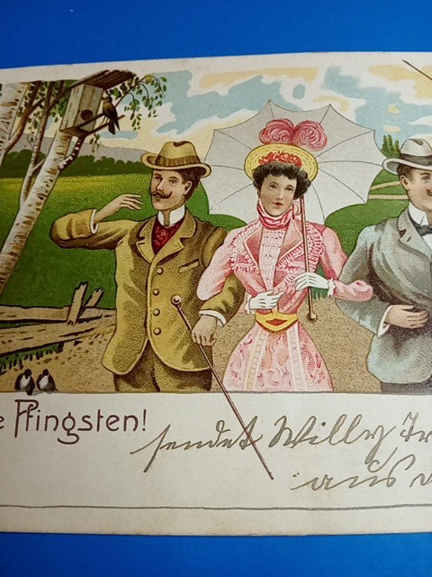 Litho AK - Fröhliche Pfingsten. Die Karte ist gelaufen mit Marke, 1902. Guter Zustand siehe Bilder.