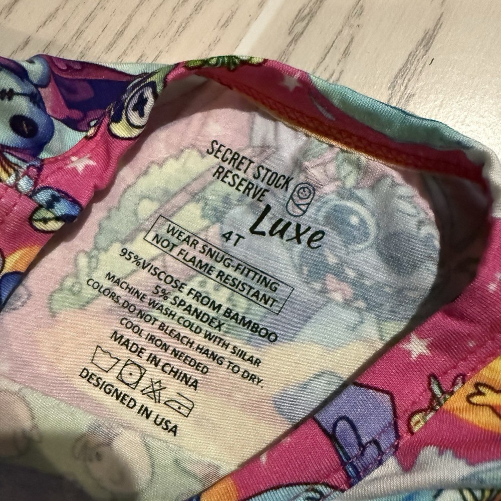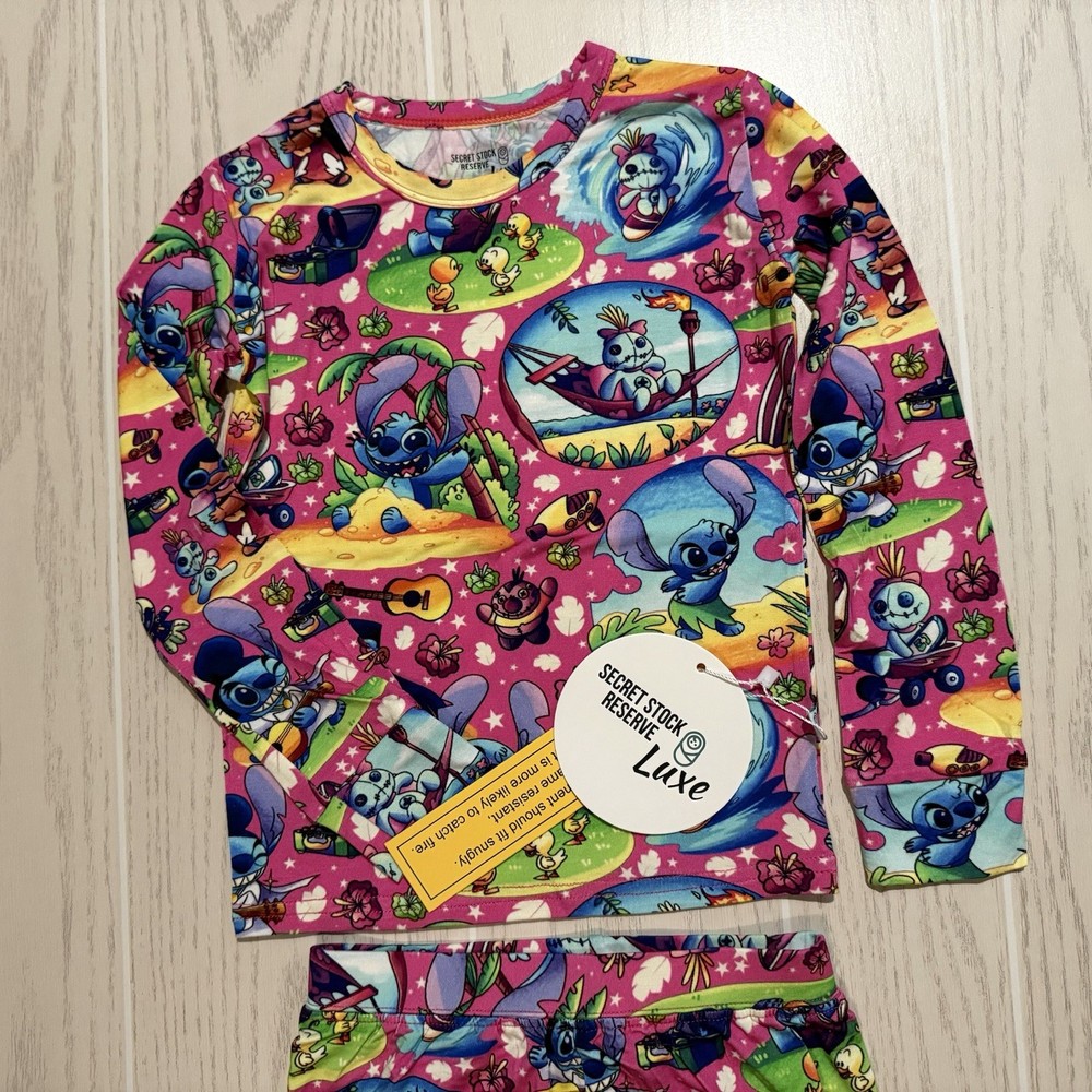 Little Britches Boutique bamboo pajama set features a fun Disney Stitch print on a pink background and comes from the highly sought-after Secret Stock Reserve Luxe Collection. Made from buttery-soft viscose from bamboo, this two-piece pajama set is breathable, lightweight, and super stretchy for comfortable sleep and lounging. Perfect for Disney fans and little ones who love cozy pajamas. Item Details • Brand: Little Britches Boutique • Collection: Secret Stock Reserve Luxe • Size: Girls 4T • Color: Pink • Character: Stitch (Disney) • Set Includes: Long sleeve pajama top & matching pants • Material: Viscose from Bamboo Blend • Condition: New With Tags Bamboo fabric is known for being soft, breathable, and gentle on sensitive skin, making it a favorite for children’s sleepwear. Perfect for bedtime, sleepovers, or relaxing at home! Please review all photos as they are part of the description. Smoke & Pet Free Home Thank you for shopping with South Peach Trends!