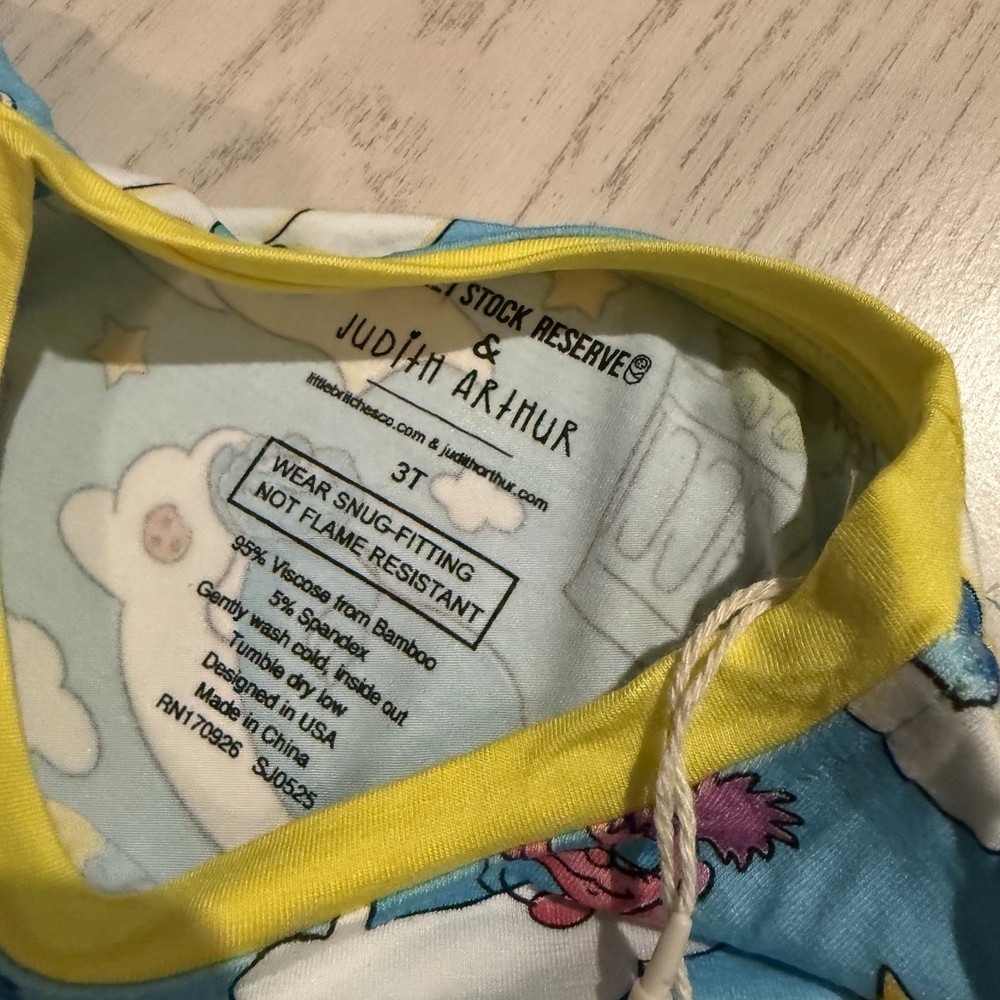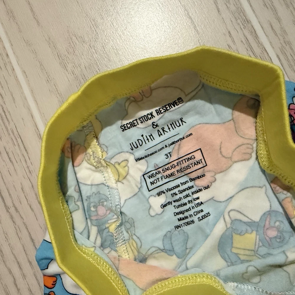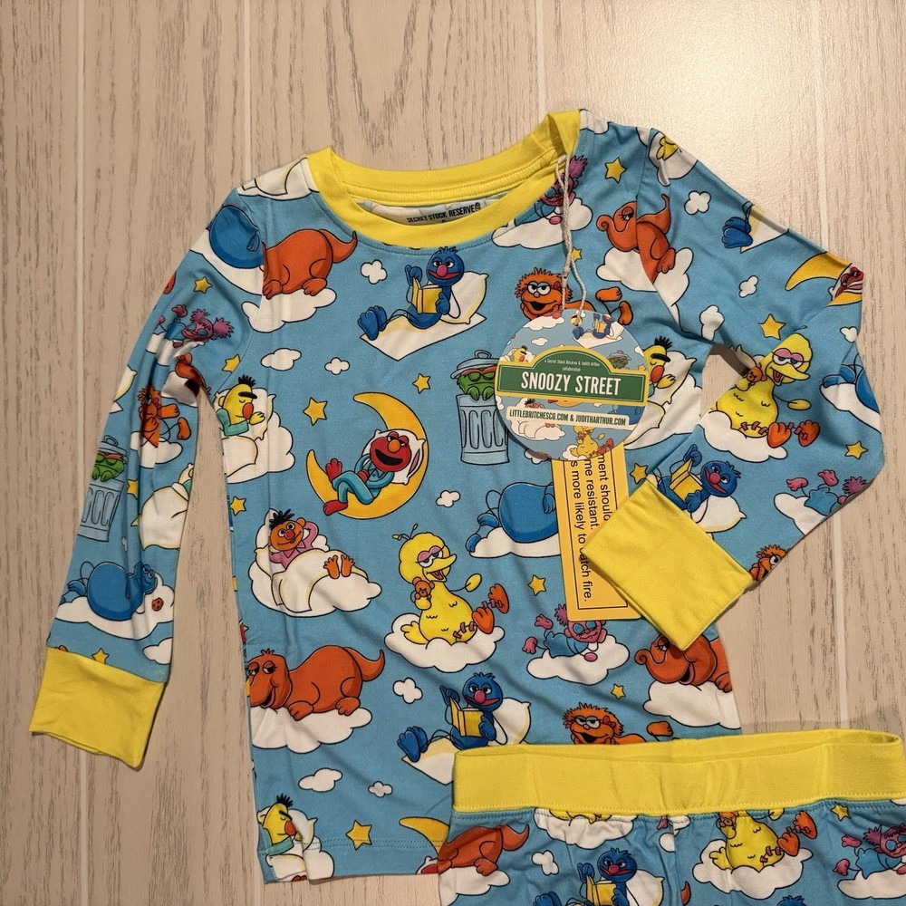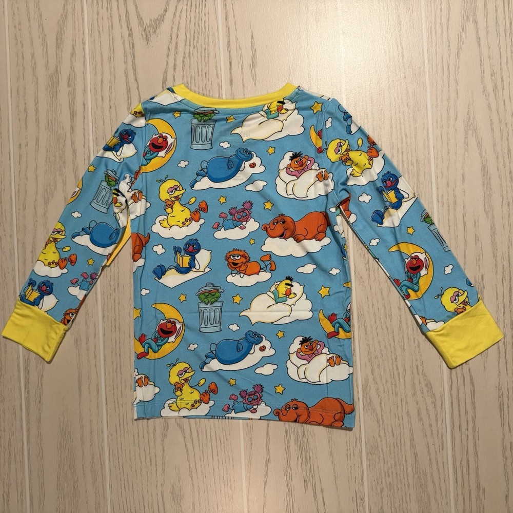 Adorable 2-piece bamboo pajama set from Little Britches Boutique Secret Stock Reserve in collaboration with Judith Arthur. This fun print features beloved Sesame Street characters including Elmo, Big Bird, Bert, Ernie, and Grover relaxing on clouds and moons. Made from ultra-soft bamboo viscose fabric, this set is breathable, stretchy, and comfortable for sleep or lounging. Details • Size: 3T unisex • 2-piece pajama set • Long sleeve top with elastic waist pants • Soft and stretchy bamboo fabric • Colorful Snoozy Street Sesame Street print • From the Secret Stock Reserve collaboration with Judith Arthur • New with tags Perfect for bedtime, lounging, or a gift for any Sesame Street fan. Ships same or next business day from my store South Peach Trends.