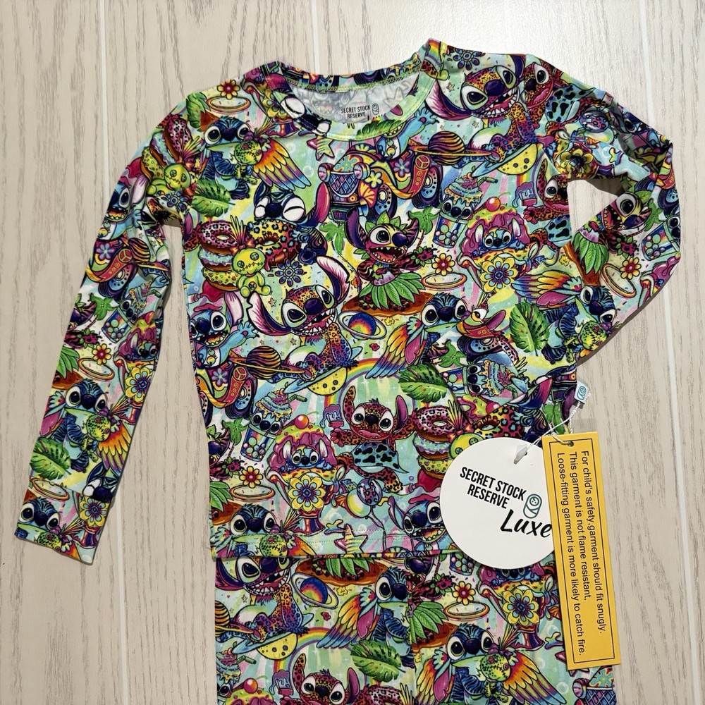 Little Britches Boutique bamboo pajama set features a colorful Disney Stitch tropical print and comes from the highly sought-after Secret Stock Reserve Luxe Collection. Made from buttery-soft viscose from bamboo, this 2-piece pajama set is breathable, lightweight, and stretchy—perfect for comfortable sleep and lounging. Bamboo fabric is known for being gentle on sensitive skin and super soft, making it a favorite for children’s pajamas. Item Details • Brand: Little Britches Boutique • Collection: Secret Stock Reserve Luxe • Size: 2T • Gender: Unisex • Character: Stitch (Disney) • Color: Multicolor tropical print • Set Includes: Long sleeve pajama top & matching pants • Material: Viscose from Bamboo Blend • Condition: New With Tags Perfect for bedtime, sleepovers, or relaxing at home. A great find for fans of boutique bamboo pajamas and Disney Stitch! Please review all photos as they are part of the description. Ships Fast! Smoke & Pet Free Home Thank you for shopping with South Peach Trends!