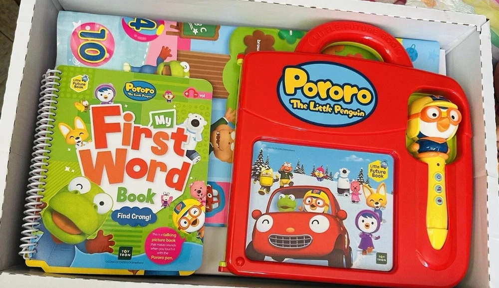 In box new Box has been opened This educational toy from Toytron is perfect for little ones aged 37 months and up. It features a colorful red design with the popular Pororo character and is ideal for helping children develop their language skills. The toy includes a learning words book with a sound pen in English, making it easy for kids to learn new vocabulary and phrases. With its unisex design, this Little Future Book Pororo Pen English Version is a great choice for any child who loves to learn. The toy is perfect for developmental baby toys and is sure to provide hours of educational fun. So why wait? Order yours today and give your child the gift of knowledge!