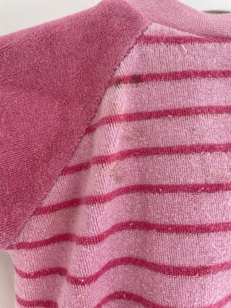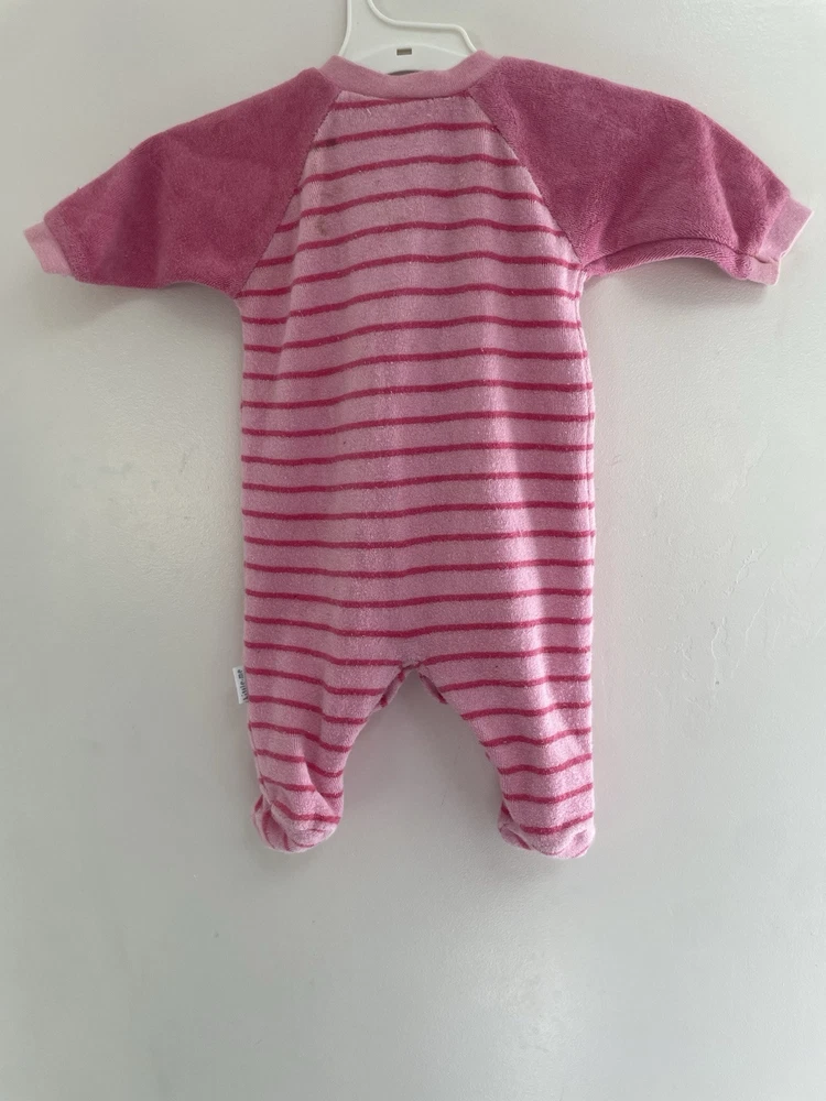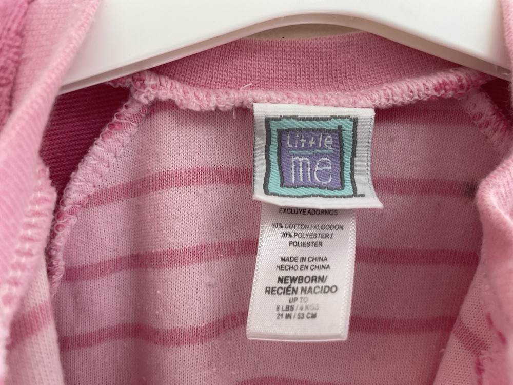 Little Me Baby Girls Cute Butterfly Striped Terry Long Sleeve 1-Piece Pink NB. Condition is pre-owned. Smoke free, pet free home. Shipped via USPS Ground Advantage. In good condition. There are stains on the front. Free of rips.