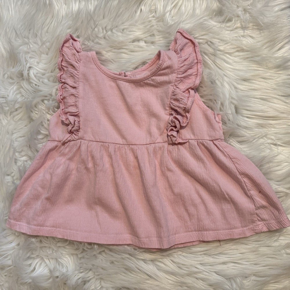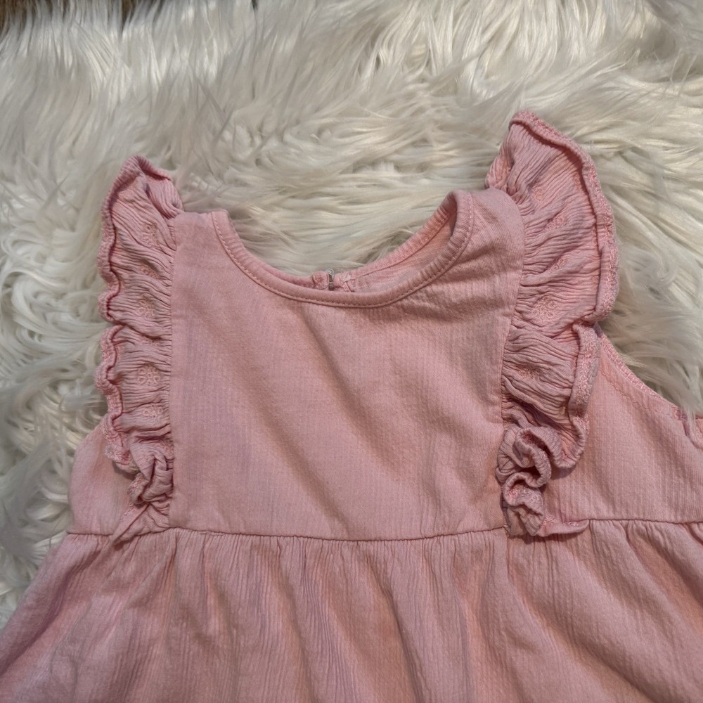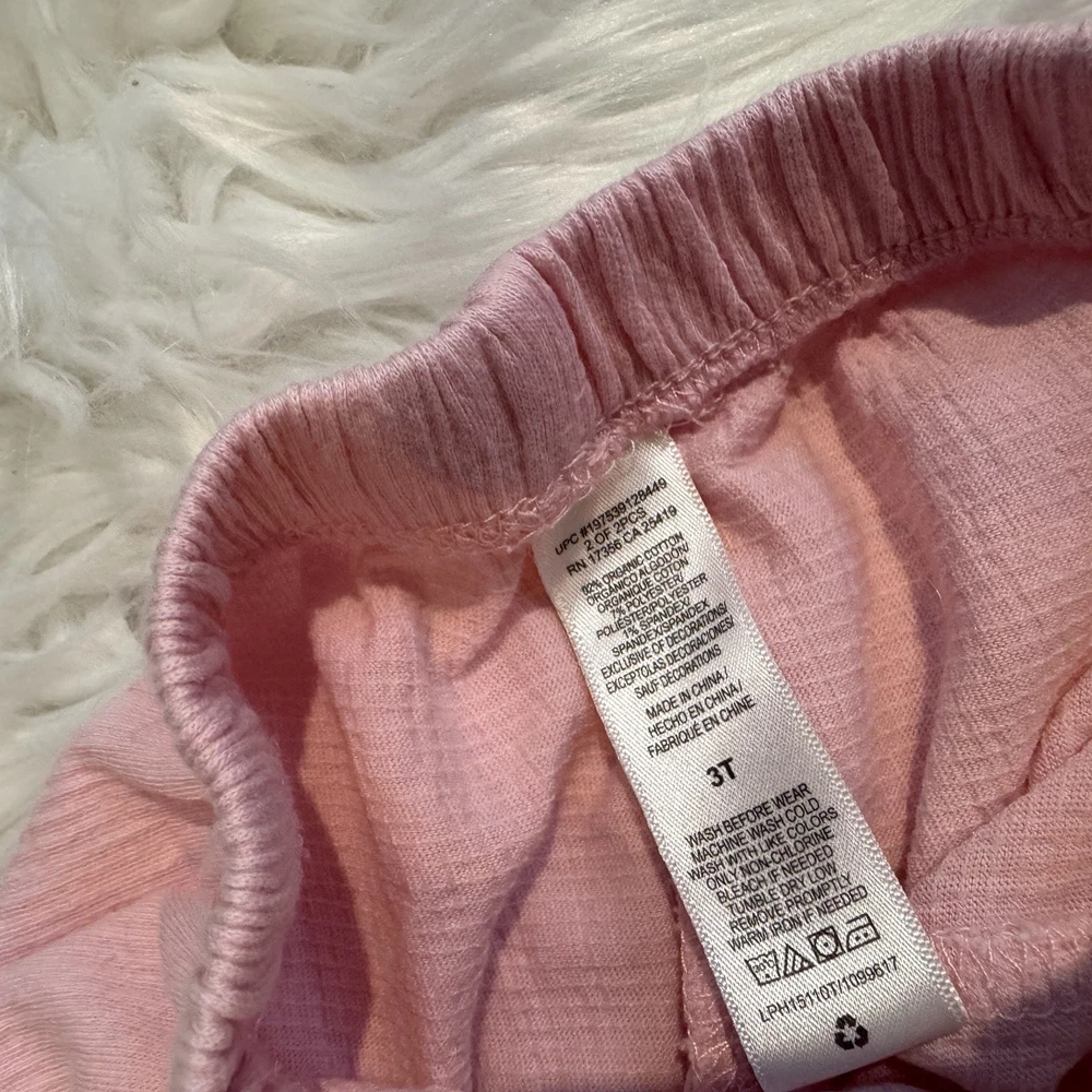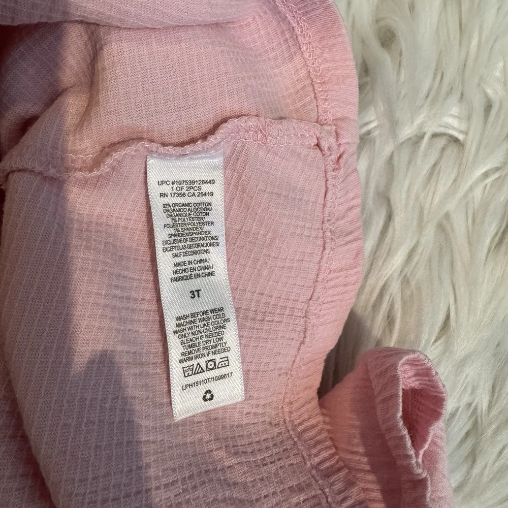 Adorable Little Me toddler girls’ 3T two-piece outfit set in a soft light pink color. Gently used and in good condition. Please Note: Pants have a small stain on the front (shown in photos). Includes a sleeveless ruffle-trim top with a peplum silhouette and matching wide-leg cropped pants. Perfect for spring and summer, playtime, daycare, or everyday wear. Smoke & Pet Free Home
