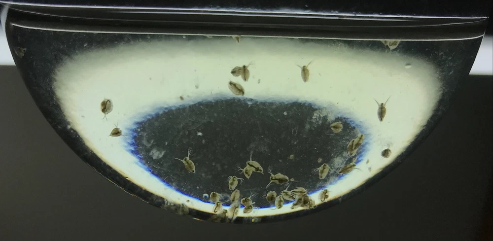 Please check the 10 day weather forecast in your location before placing your order. If the temperature on the high side might be over 80F or the low side might be under 32F, please do not order. If you ignore this important warning message, you will probably wasting your time or money. Your order will be cancelled due to your location with 5 consecutive days of low temperature(< 32F). Please purchase the 120 hrs heat pad together with your daphnia order as needed(not sold separately) but it will not work under 32F as told by the manufacturer. For sale are multiple quantities of the largest daphnia- Daphnia magna, green water only no daphnia and durable dropper only no daphnia. I do sell daphnia individually, since some customers like to raise them as pets. (So yes, selecting a quantity of 1 means one single daphnia for all those curious! I will usually add some freshly hatched daphnia for you.) My recent accidental trial of rearing guppies with daphnia shown that daphnia become a companion instead of live food when the quantity is large enough. If you intend to count the daphnia or feed your fish frequently in small quantity using the dropper, I suggest you purchasing a durable dropper in the "option" and cut to the desired length on receiving. No single purchase of dropper, please. I spent time to count every order I mailed. If you do not count, visual estimate the quantity and left a negative feedback, you will be disappointed. Not just your reputation to the public but the future purchase from me. If you choose "green water only no daphnia", please be mindful each bottle is 8 ozs with an unknown concentration of green microalgae and will not be fully filled to prevent leaking due to extreme weather conditions. I filtered the water with a 60 micron nylon net to eliminate unwanted organisms, and the content inside the filtrate is unknown. M ost possibly it is chlorella sp. inside but it is not guaranteed. I have been using this green water to grow all my daphnia for several months without a problem. If you choose to buy the durable dropper only, please do not expect getting free daphnia. The vice versa. I will process your order as soon as possible and I will pick the right size of the daphnia for you (not too big nor too small). For DOA (Dead On Arrived) case, I will try to ship again free of charge. If you request a refund, shipping fee will be deducted. No second time resend. If you do not accept my policy, please do not buy them. About the Daphnia Magna: They can reach a body size of more than 2 mm as shown in the first picture. They can be unisex( female only ) or bisex( male or female ); it depends on the water condition. When they are unisex, they can reproduce by themselves and the eggs hatch almost immediately after birth. My Discoveries: I did some tests and put 10 daphnia each in a single compartment of a 10-compartment container. Over some time, I discovered that most of them had been doubled or tripled in quantity. I used only green water (unidentified microalgae) from my aquarium tanks as their food and never changed it. Raising the Daphnia You can grow microalgae to feed them by extracting a part of the water from the package, and placing it in a separate container. By exposing it to LED light, it will start to grow, and you can feed your Daphnia with the microalgae. You could also feed them yeast, but I recommend feeding them with microalgae as it is easy to grow. You will see the green water in just a few days. Good luck. Q&A: Q: Hello. I have a few questions… do daphnia need a filter? Will a one gallon bowl work and just add green water as needed? Also should I use cycled tank water? Thanks A: Daphnia are biological filters, so there is no need for a filter. They can filter bacteria, diatoms and microalgae as food. Most containers are good for keeping them in except narrow ones or the ones containing iron which may cause rusting. You can use cycled tank water if you wish, but it is not necessary.