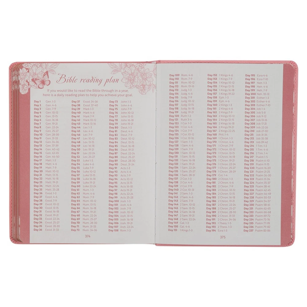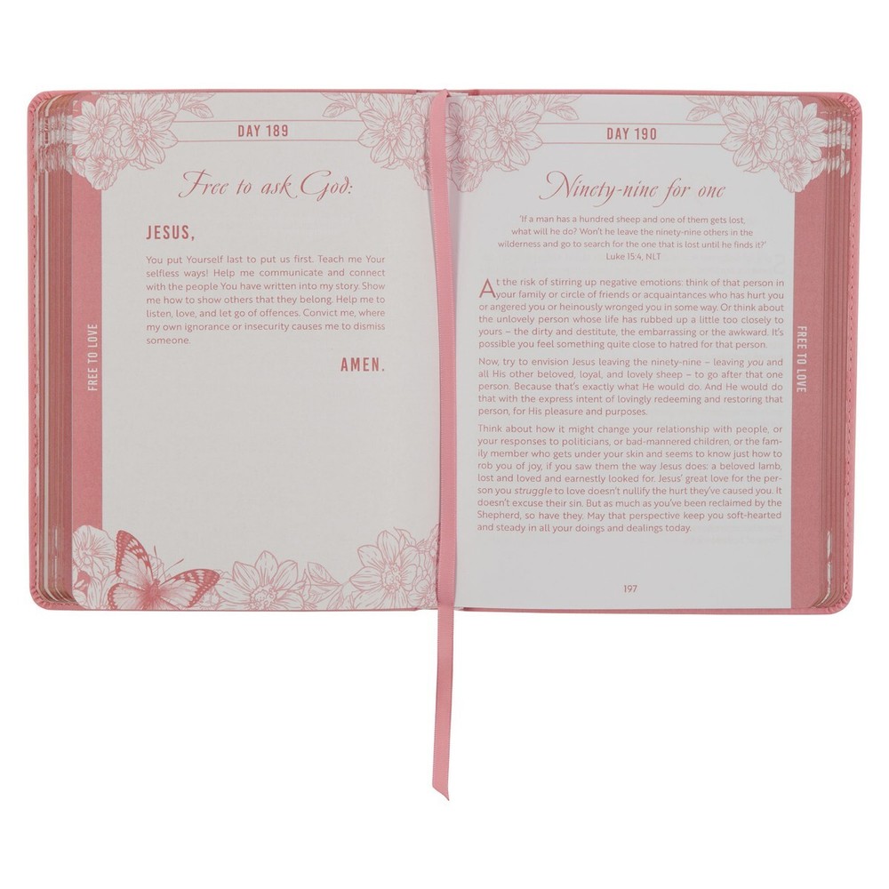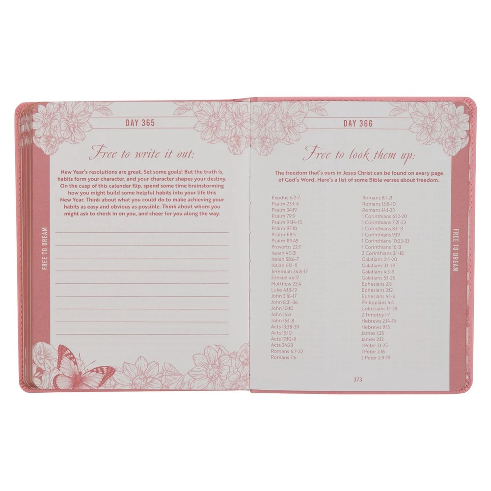 The Live Free Pink Faux Leather Devotional cover showcases elegant gold-foiled striped butterflies gracefully hovering above a hedge of heat-debossed flowers. Delicate gold-foiled flower buds subtly emerge the design, harmonizing with the gold-foiled double border that frames the artwork. The title is subtly heat-debossed in the center of the design. Gilt-edged page edges elegantly complement the gold-foiled accents on the cover. The interior pages, printed in a captivating ruby pink hue, are adorned with charming floral corner designs. To assist you in tracking your progress through the year-long devotional, a pink ribbon marker is thoughtfully included. Entries include an uplifting devotion and inspiring Scripture promises. Select days offer space to record your thoughts and prayers. The Live Free Pink Faux Leather Devotional serves as a meaningful Mother's Day Gift, Christmas Gift or Birthday Gift, particularly for a friend who is new to the faith, providing her with valuable support and guidance along their spiritual journey. ♥ Title: Live Free Pink Faux Leather Devotional ♥ Large Print Text ♥ Heat-Debossed Flower Design ♥ Heat-Debossed Title ♥ Pink Faux Leather ♥ Gold Foiled Title Accent ♥ Flex-Cover ♥ One-Color Interior Pages ♥ Ribbon Marker ♥ Presentation Page For Gift Giving ♥ Gilt Edged Page(s) ♥ Page(s): 388 ♥ Devotional Reading(s): 366 ♥ Height and Width: 7.8" x 6.1" x 1" (198 x 155 x 25mm) ADDITIONAL INFORMATION *********************************** PROCESSING & SHIPPING ♥ ALL items are “MADE TO ORDER” ♥ FULFILLMENT TIME 2 to 7 BUSINESS days ♥ STANDARD SHIP TIMES (if NO delays) 3-5 BUSINESS days AFTER fulfillment ♥ If devotionals are needed by a specific date please notify us BEFORE placing your order to ensure you will receive the item in a timely manner RETURN(S) / EXCHANGE(S) ♥ Returns, Exchanges and Cancellations are NOT ACCEPTED ♥ Contact us with ALL questions BEFORE purchasing ♥ We will NOT Refund/Replace items marked as delivered (if package has been marked as delivered but you have not received it, check with your local post office)