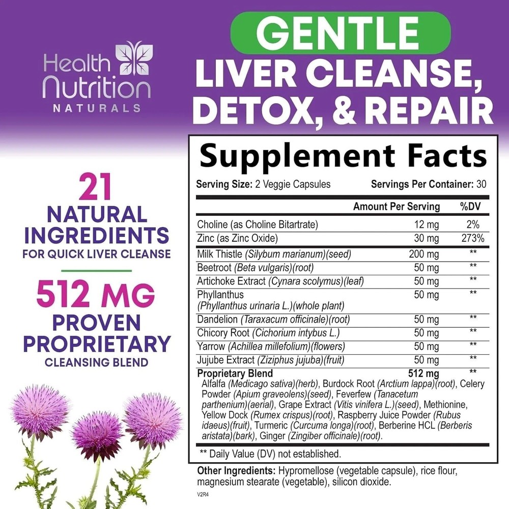 Liver Cleanse Detox Repair - 1104mg Milk Thistle Dandelion Support Supplement