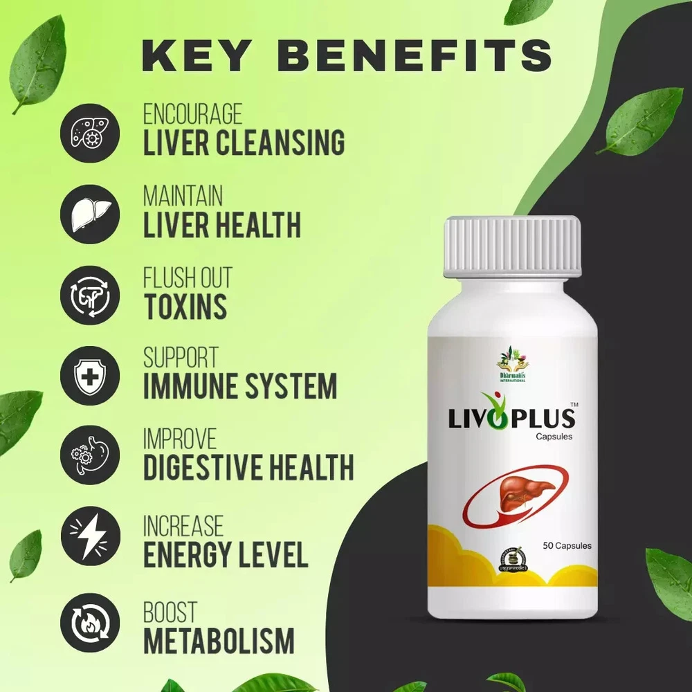 Livoplus capsule with its powerful liver toning herbs ensure optimum liver function through the protection of the hepatic parenchyma, and by way of its potent antioxidant properties, it acts as a powerful detoxification agent. Livoplus capsule neutralizes all kinds of toxins from the food, water, air and medications, all sources of detrimental effects on the liver. Counteracting those hard-to-avoid toxins and therefore protecting one of the body's most important organs, Livoplus capsule has massive health benefits for everyone. Its balanced combination prevents liver diseases and helps maintain good health. Livoplus capsule is one of the most effective liver support formulas. Alcohol users in particular found Livoplus capsule helpful in maintaining a healthier liver. Livoplus capsule facilitates rapid elimination of acetaldehyde, the toxic intermediate metabolite of alcohol metabolism, and ensures protection from alcohol-induced hepatic damage. It diminishes the lipotropic activity in chronic alcoholism, and prevents fatty infiltration of the liver. In pre-cirrhotic conditions, Livoplus capsule arrests the progress of the disease and prevents further liver damage. Livoplus capsule is all-natural, complex multi-ingredient formula. It is safe and effective in protecting the liver against harmful toxins from drugs, alcohol, food and water. Livoplus capsule helps regulate levels of enzymes and optimizes assimilation. Livoplus capsule has also been found to be associated with an increase in serum albumin, which is another indication of the liver protection it provides. It also has cholesterol-regulating action and helps maintain healthy levels of serum cholesterol, lipoproteins, phospholipids and triglycerides. Livoplus capsule is the ONLY natural and safe solution to cleanse and detoxify the liver! You can expect the following from Livoplus capsules: Improves the functional efficiency of the liver Increases bile secretion and support a healthy liver Neutralizes toxins from food, water, air and medications 100% herbal, affordable and effective No chemicals, no negative side effects Livoplus capsule is all-in-one powerful herbal liver support supplement. It is formulated from the time tested ayurvedic herbs that help strengthen the liver. It is helpful in preventing and protecting the liver from alcoholic liver disease, enlargement of liver, cirrhosis of liver and hyperacidity, hepatitis and jaundice, viral hepatitis, pre-cirrhotic conditions and early cirrhosis, protein energy malnutrition, anemia and dyspepsia and loss of appetite or anorexia. Ingredients Livoplus capsule is a natural formulation of the finest herbs that work highly effectively against alcoholic liver disease, enlargement of liver, cirrhosis of liver, hepatitis and jaundice, viral hepatitis, pre-cirrhotic conditions and early cirrhosis, protein energy malnutrition and loss of appetite. The natural ingredients that are used in this supplement are the highest quality and purest form to provide an ideal all-around solution for optimum liver functioning. Each pack of Livoplus capsule contains 50 capsules. Livoplus capsules consist of the following potent ingredients: Kantkari (Solanumxanthocarpu), Amrta (Tinispora Cordifolia), Makoy (Solanum Nigrum), Kasni (Cichorium Intybus), Palihari (Tephrosia Purpur), Arjun (Terminalia Arjuna), Mandur Bhasam, Kasmard (Cassia Occidentalis), Santhi (Boerhaavia Diffusa), Bhangra (Eclipta Alba), Bhui Aamla (Phyllanthus Niruri), Aamla (Phyllanthus Emblica), Daru Hald (Berberis Aristata), Chitrak (Plumbago Zeylanica), Vaivading (Emblica Ribes), Haritki (Terminalia Chebula) Frequently Asked Questions What is Livoplus capsule? Livoplus capsule is a unique combination of valuable herbs such as boerhaavia diffusa, tinospora cordifolia, etc. Livoplus capsule is an effective herbal remedy for liver diseases and disorders such as alcoholic liver disease, hepatitis and jaundice, enlargement of liver, cirrhosis of liver, viral hepatitis, pre-cirrhotic conditions and early cirrhosis, protein energy malnutrition and loss of appetite. Can I use Livoplus capsule? If you are looking for a natural and safe solution to prevent liver diseases and to maintain healthy liver functioning, then this product is for you. Livoplus capsules help in the prevention: 1. Viral hepatitis 2. Alcoholic liver disease 3. Pre-cirrhotic conditions and early cirrhosis 4. Protein energy malnutrition 5. Loss of appetite 6. Radiation and chemotherapy-induced liver damage In addition to taking Livoplus capsules, eliminate alcohol and smoking completely. Include fresh fruits, juices and vegetables in your diet and drink plenty of water. Is Livoplus capsule safe? Livoplus capsule has been prepared with the foremost care and detail. The herbs that went into the preparation of this product are the safest and most renowned. We follow stringent International standards in safety and hygiene in the preparation of our products. What is the dosage? Take 1 or 2 capsules twice daily with water after meals. Always follow a regular course of Livoplus capsule for 2 to 3 months to achieve optimum results. Will there be any problem if I miss a dose? If you have missed a dose, then take it as soon as you remember. Follow the course in a disciplined manner to achieve strong and permanent results. How long will it take before I begin to notice results? Typically most people will see results in 3 to 6 weeks. It is suggested that you start with a two months supply to achieve maximum benefit from this herbal product. Each pack of Livoplus capsule contains 50 capsules. 4 packs of it will last for two months. If you have missed a dose, then take it as soon as you remember. Follow the course in a disciplined manner to achieve best results. Will my privacy be respected? Your privacy is of prime concern and will be given maximum priority. Your order will be shipped to you in Discreet Plain Packet and follows International regulations that are the norm in the shippin