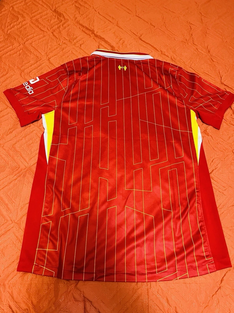 Show your support for Liverpool with this men's large red jersey for the 2024-25 season. Made by Nike, this jersey is perfect for soccer fans who want to represent their favorite team. The jersey features the iconic Liverpool team logo and is designed in the team's signature red color. Whether you're watching the game from the stands or playing a match on the field, this jersey is sure to make a statement. With its comfortable fit and durable design, you'll be able to wear it for any occasion. So why wait? Order your Liverpool jersey today and show your love for the team!