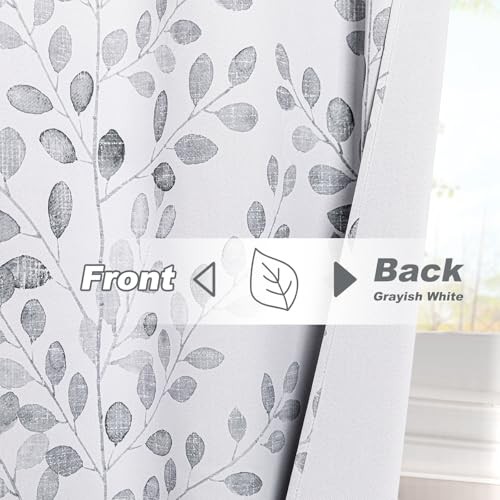 Living Room Curtains 84 inches Long Thermal 52"W x 84"L (Pack of 2) Leaf-grey