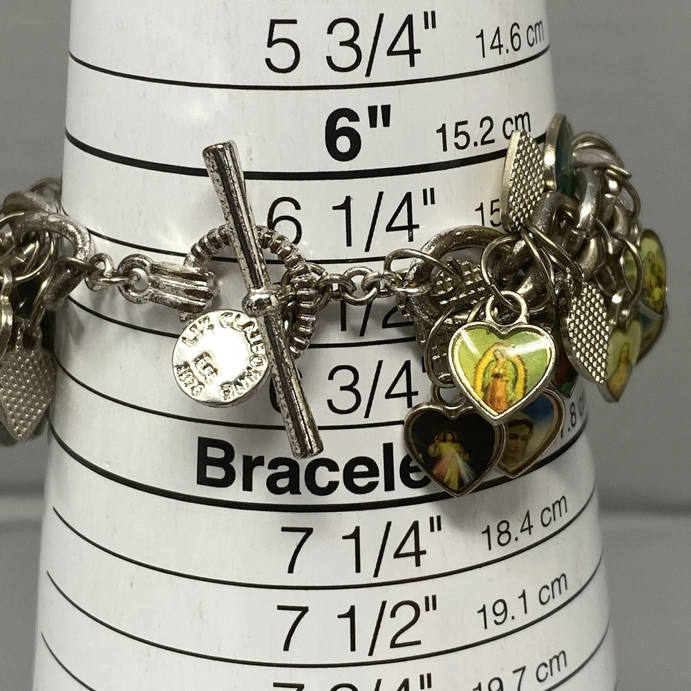 Liz Claiborne Charm Bracelet Rhinestone Stud Heart Jesus Photos Religious 6.5" Sizes are approximate and may vary slightly Items may be tested with the Presidium Gem Tester and/or acid tested to ensure accuracy of stones & precious metals. BUY MORE SAVE MORE!! 20% off three or more jewelry items. Items must be purchased/paid in the same order (discount automatically applied during checkout). Not able to combine with any other coupons, promotions or best offers. CHECK BACK OFTEN AS WE LISTE NEW ITEMS DAILY! FOLLOW OUR STORE TO RECEIVE AUTOMATIC UPDATES! SHIPPING POLICY Most jewelry items ship in a small jewelry box for protection and easy gift giving. Fast shipping (within 24 hours M-F). Combined shipping for jewelry items should automatically adjust during checkout. If it does not, reach out to us immediately and as long as the orders have not shipped, we can combine and review for partial refund.
