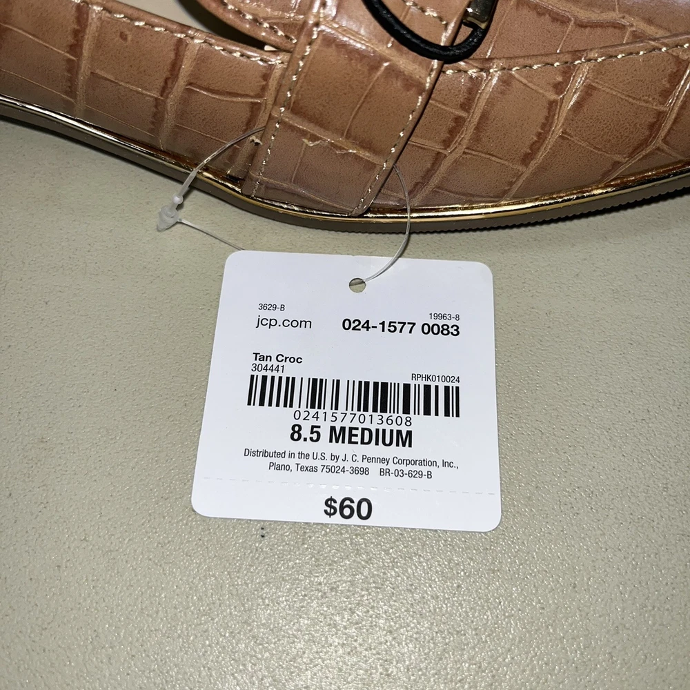HomeLiz Claiborne Tan NEW Women's Times Croc Comfort Loafers Slip on Flats Shoes 8.5