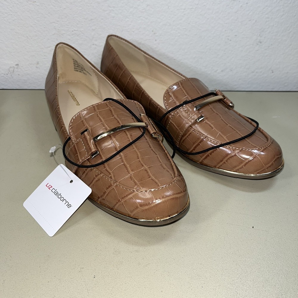 Liz Claiborne Tan NEW Women's Times Croc Comfort Loafers Slip on Flats Shoes 8.5.