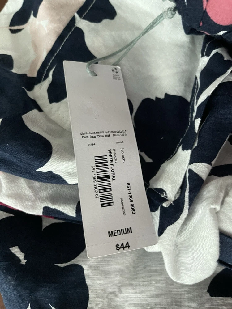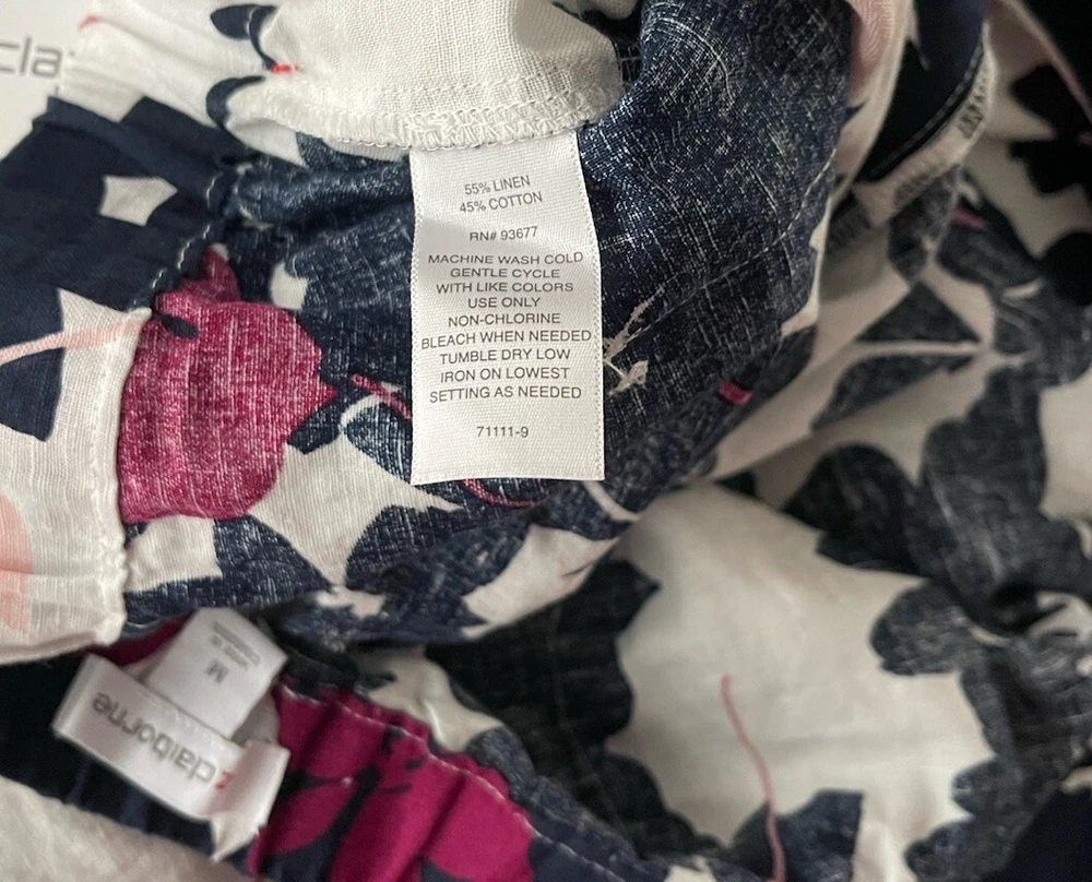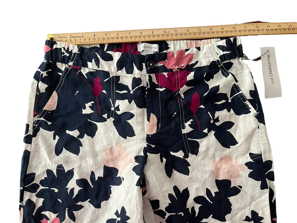 Liz Claiborne Women Linen Blend Pants Med Navy White floral Vacation Beach NWT. Condition is New with tags. Shipped with USPS First Class.