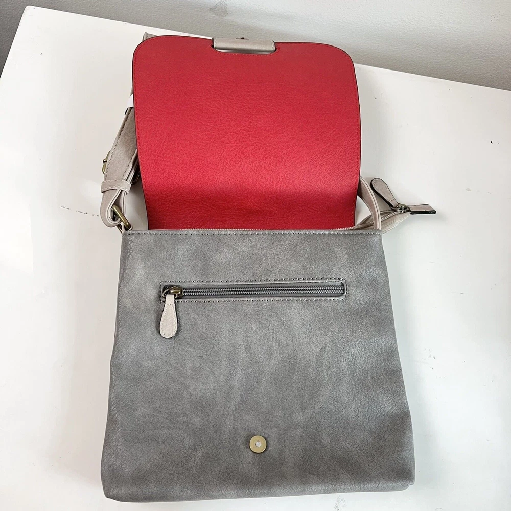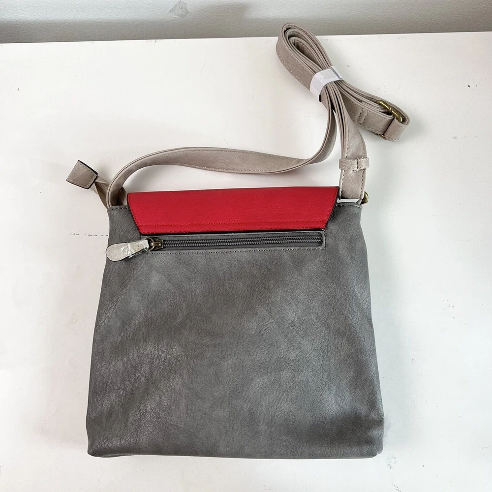 Liz Soto Amy Cross Body Handbag Vegan Leather Color Block Gray Red Zip -Brand new with *defect!*****small tear ***Please view all images & description** * PVC vegan leather, poly lining * • Exterior back zipper pocket, under flap zipper pocket, interior zipper divider with 2 pouch pockets and 1 zip pocket * • Adjustable strap, 28–49"L * • 9"H x 10"W at bottom x 2"D * • Zip closure with magnetic closure on the flap -Fr:pet-free & smoke-free home -Happy to answer your question. +Fast shipper.Most ship Next day. ———More info———- -The Amy is an adjustable cross body bag to fit all sizes. It has a secure zipper pocket under the flap plus one on the rear. There is a zipper top with a divider inside plus more pockets and another secure zipper pocket. The Amy comes with vegan leather color-blocked styling. This is the perfect go anywhere handbag with plenty of colors and contemporary styling. —————————— Tags : DIY Project Gift Summer Spring Fall Winter work everyday use must have multifunction grey office workwear vacation trip/ mue neung hoksippad