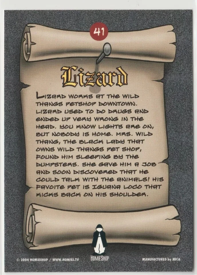 Lizard #41 Homies Swap Cards 2004 NECA Lowrider Chicano Barrio East LA personal stock photos centering of cards may vary compared to listed images