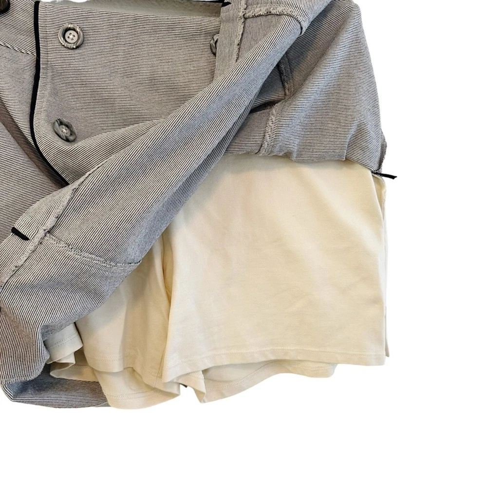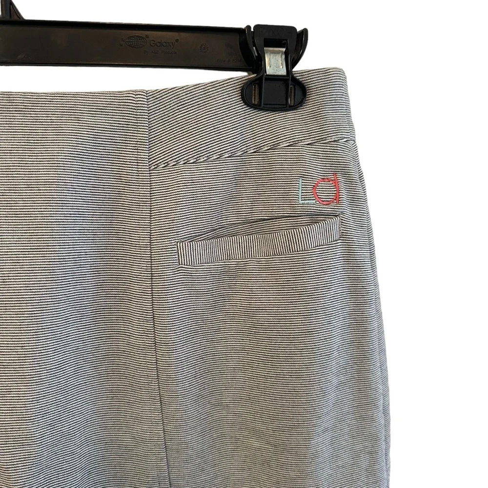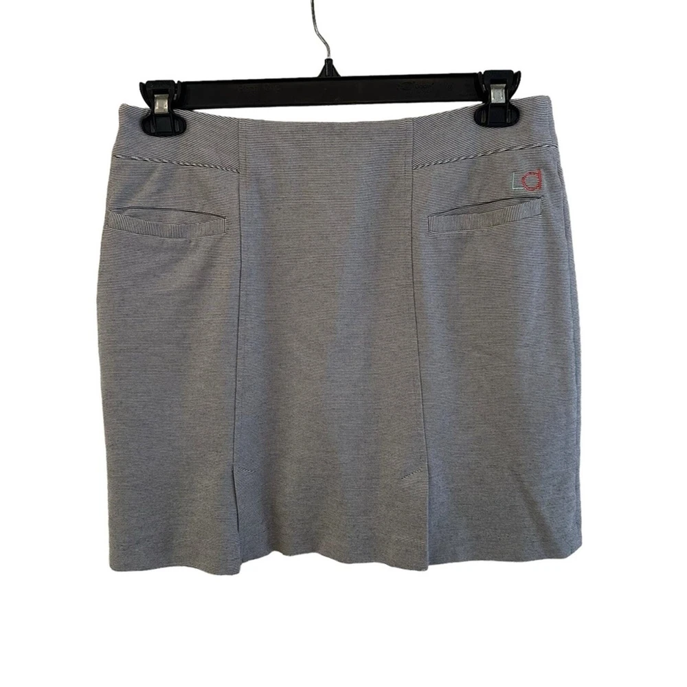 Get ready to elevate your golf wardrobe with this stylish Lizzie Driver skort. The gray pinstripe design adds a touch of sophistication to your athletic look, while the jersey fabric provides comfort and flexibility for your swing. Perfect for any nautical-themed course, this skort is a must-have for any golf enthusiast. Designed for women, this size 8 skort features a short length and athletic style, making it the perfect addition to your golf clothing collection. In addition, the skort is branded with the Lizzie Driver logo and is suitable for any golf performance or activity. Don't miss out on this versatile and chic skort for your next golf game. Size: 8 Length: 17” Waist: 16.5” across