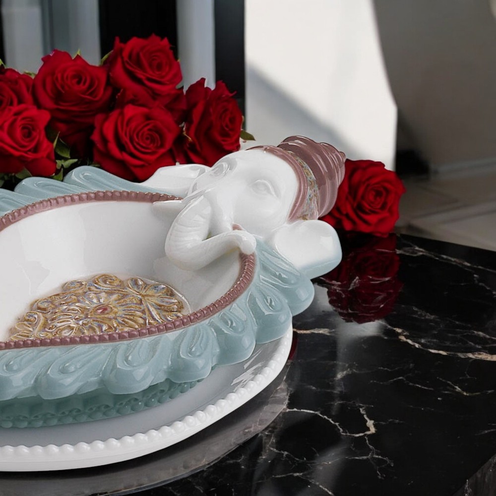Lladro 01008320 Ganesha Diya Figurine #8320 Lladro 01008320 Ganesha Diya Figurine #8320 Lladro Ganesha Diya Figurine A Symbol of Wisdom and Light Honor the traditions of Hindu culture with the Lladro Ganesha Diya Figurine , a stunning representation of Lord Ganesha, the revered god of wisdom and knowledge. This figurine doubles as an oil lamp for offerings (diya), reflecting the deep spiritual significance of light in Hindu rituals. Crafted with meticulous attention to detail, this piece is adorned with a lustrous finish and features a border enhanced with gold luster, making it both a spiritual and decorative masterpiece. Its compact size and delicate craftsmanship make it a perfect addition to your altar, home, or collection. Details: SKU: 01008320 Weight: 0.47 lb (0.21 kg) Finish: Gloss with Gold Luster Dimensions: Height: 1.575 in (4 cm) Width: 5.906 in (15 cm) Length: 3.543 in (9 cm) Sculptor: Dpto. Diseño y Ornamentación Insurance Included: Yes Perfect as a gift for loved ones or as a personal treasure, the Lladro Ganesha Diya Figurine combines spiritual meaning with artistic beauty. Discover more exclusive Lladró creations in our eBay store: Visit Our Store Illuminate your space with the wisdom and blessings of Lord Ganesha. Returns Policy We offer a 14-day return policy for your peace of mind. If you’re not satisfied with your purchase, you may return the item at your own cost, provided it’s in its original condition with all packaging intact. Please ensure the return shipment is fully insured to cover any potential damage during transit. Damaged Items In the rare event of damage upon delivery, please: Retain all packaging and boxes. Provide photos of the damaged item and packaging to help us process insurance and shipping claims. Contact us within 24 hours of receipt to arrange for a refund or replacement, subject to availability. Import Duties Import duties or taxes, if applicable, are the buyer’s responsibility. These fees are determined by your local customs office, and we recommend consulting them for specific charges. TRE SKOR does not collect or control these fees. Non-Claimed Products If a shipment is unclaimed due to refusal to pay customs duties or delays in providing required documents, resulting in its return, TRE SKOR reserves the right to charge the customer for both the initial shipping and any return fees incurred. This applies to orders shipped with FREE SHIPPING . Notification Process We will make reasonable attempts to notify you via the email associated with your eBay account before applying any charges. Acknowledgment By purchasing from TRE SKOR, you agree to abide by our Shipping, Returns, and Non-Claim Policy . For any questions or assistance, please don’t hesitate to contact our customer service team. Explore more treasures in our store here: Visit TRE SKOR on eBay Thank you for choosing TRE SKOR—we look forward to serving you!