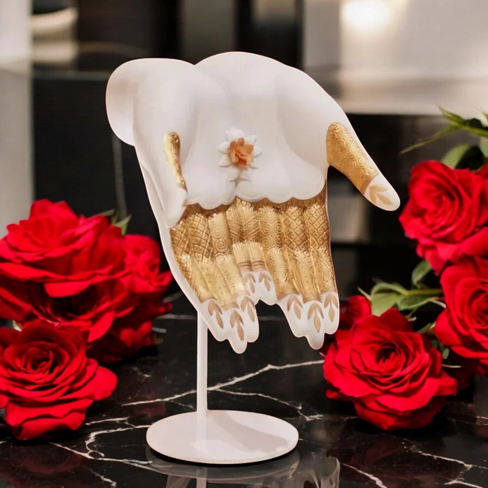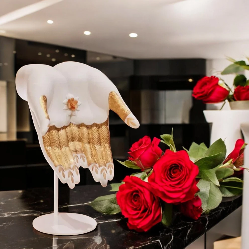Lladro 01009753 Abundance Mudra Sculpture #9753 Lladro 01009753 Abundance Mudra Sculpture #9753 Lladro Abundance Mudra Sculpture | Symbol of Prosperity and Elegance Celebrate Life’s Wealth with Timeless Artistry The Abundance Mudra sculpture by Lladró embodies the sacred gesture of abundance, inspired by ancient yoga and meditation practices in Hinduism and Buddhism. This stunning porcelain masterpiece represents life’s prosperity and serves as a profound reminder of gratitude for the blessings we receive. Crafted with precision and care, this piece showcases: Intricate Geometric Patterns & Plant Motifs: Beautifully etched onto the porcelain hand. Delicate Flower Base: Sculpted with handmade petals, adorned in harmonious tones of yellow, pink, and gold. Gold Luster Finishes: A mix of matte and glazed finishes adds a luxurious touch to its design. The hand, resting gracefully on the sculpted flower, exudes both spiritual depth and artistic brilliance, making it a perfect addition to your home or office. Product Details: SKU: 01009753 Weight: 5.07 lb (2.3 kg) Finish: Matte and gold luster Dimensions: Height: 12.6 in (32 cm) Width: 9.1 in (23 cm) Length: 9.4 in (24 cm) Sculptor: Virginia González Shipping: Includes insurance for safe delivery. A Perfect Blend of Spirituality and Art Whether you’re a collector or seeking a meaningful decorative piece, the Abundance Mudra sculpture brings a unique blend of spirituality, culture, and elegance to any space. Want More? Explore our curated collection of luxury porcelain art at our eBay store: Treskor . Celebrate prosperity and gratitude with this extraordinary Lladró creation—order today and make it yours! Returns Policy We offer a 14-day return policy for your peace of mind. If you’re not satisfied with your purchase, you may return the item at your own cost, provided it’s in its original condition with all packaging intact. Please ensure the return shipment is fully insured to cover any potential damage during transit. Damaged Items In the rare event of damage upon delivery, please: Retain all packaging and boxes. Provide photos of the damaged item and packaging to help us process insurance and shipping claims. Contact us within 24 hours of receipt to arrange for a refund or replacement, subject to availability. Import Duties Import duties or taxes, if applicable, are the buyer’s responsibility. These fees are determined by your local customs office, and we recommend consulting them for specific charges. TRE SKOR does not collect or control these fees. Non-Claimed Products If a shipment is unclaimed due to refusal to pay customs duties or delays in providing required documents, resulting in its return, TRE SKOR reserves the right to charge the customer for both the initial shipping and any return fees incurred. This applies to orders shipped with FREE SHIPPING . Notification Process We will make reasonable attempts to notify you via the email associated with your eBay account before applying any charges. Acknowledgment By purchasing from TRE SKOR, you agree to abide by our Shipping, Returns, and Non-Claim Policy . For any questions or assistance, please don’t hesitate to contact our customer service team. Explore more treasures in our store here: Visit TRE SKOR on eBay Thank you for choosing TRE SKOR—we look forward to serving you!