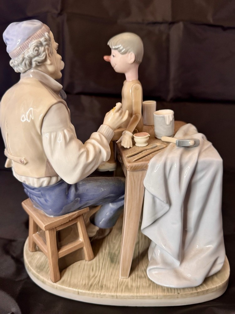 Lladro figure of “Toy Maker” (Geppetto and Pinocchio) in good condition. Made in Spain, stamped logo on the bottom with engraved production number. Does not come in original box, does not come with paintbrush, hence discounted price. Compare pricing to $395 online (recently sold w/o box). Message me for any questions you may have.